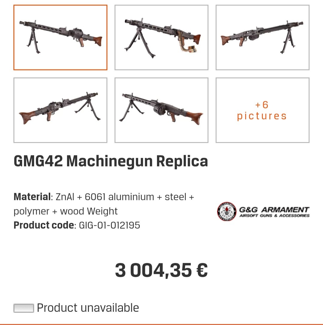 Te koop aangeboden is deze MG-42 van G&G. Grotendeels staal en echt hout. Gearbox kan er met een paar seconden uit en de loop is uitneembaar zoals bij de echte.