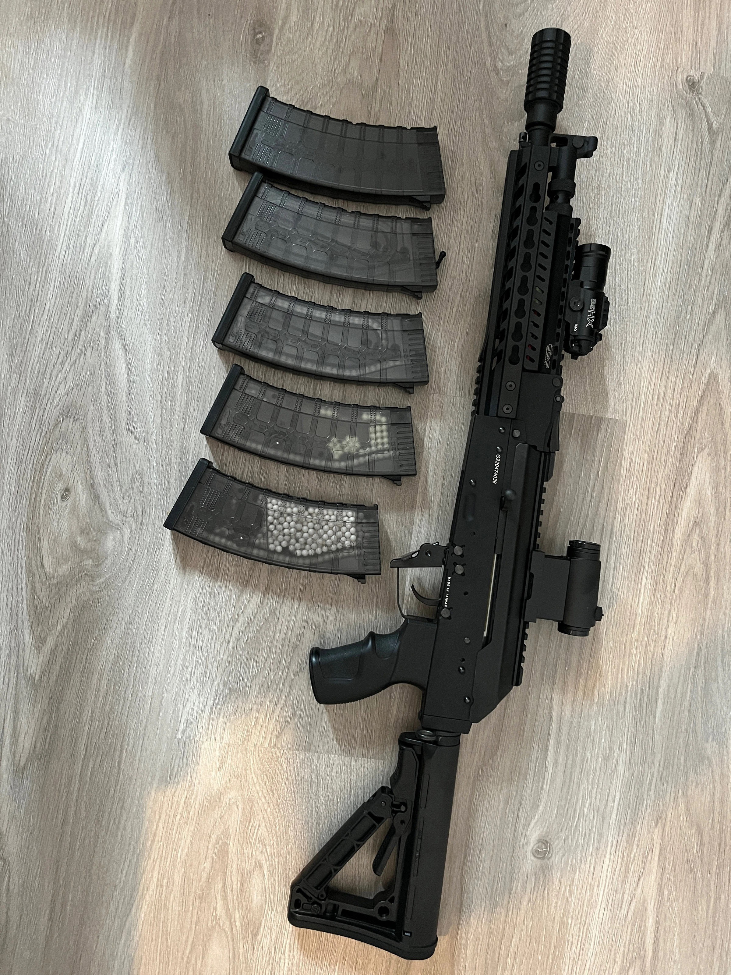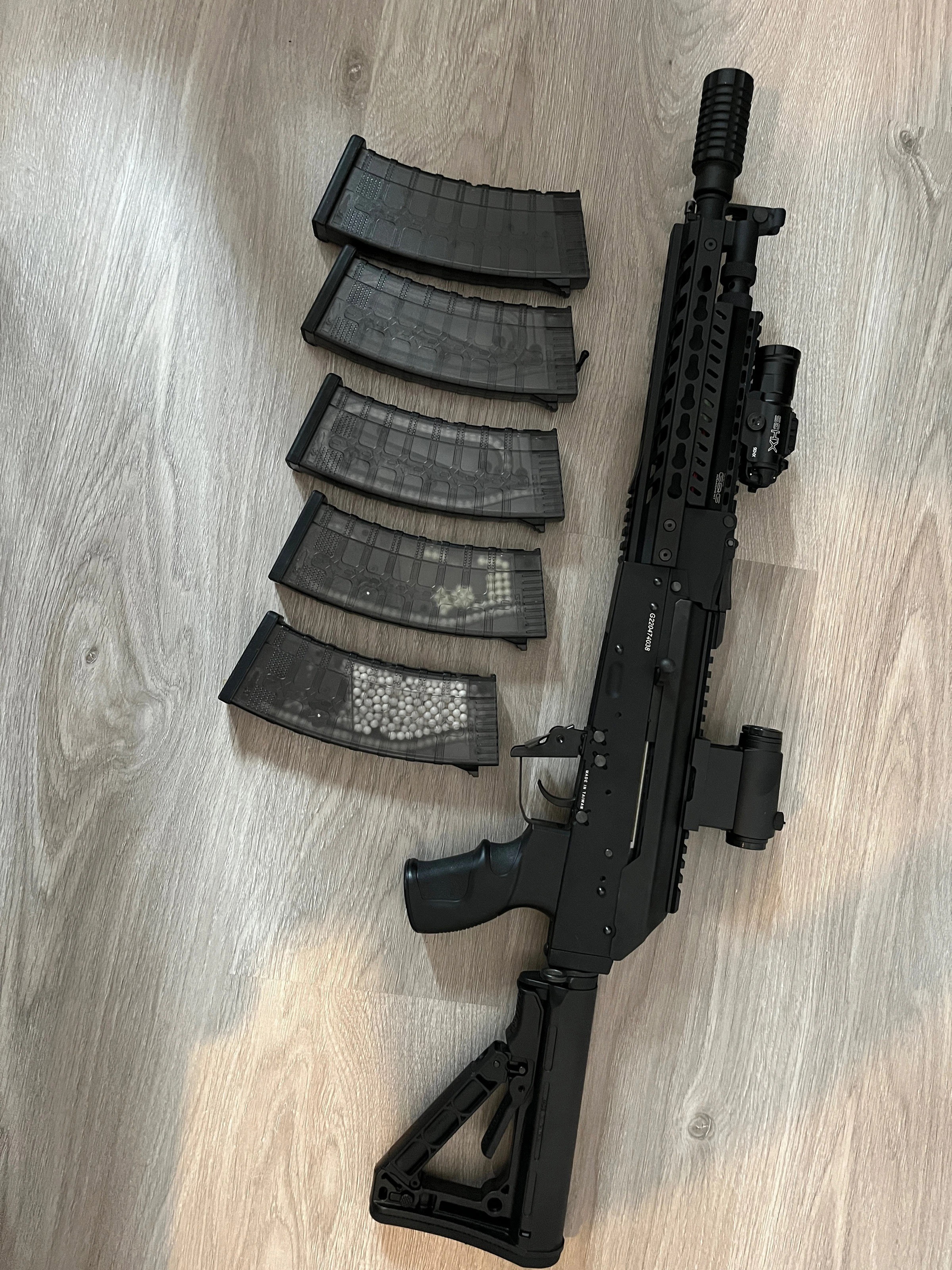 Bij deze verkoop ik mijn replica met 3 Mid Cap magazijnen en 2 Hi Cap magazijnen. Bijkomend is er ook een 1100 Li-po batterij voorzien.