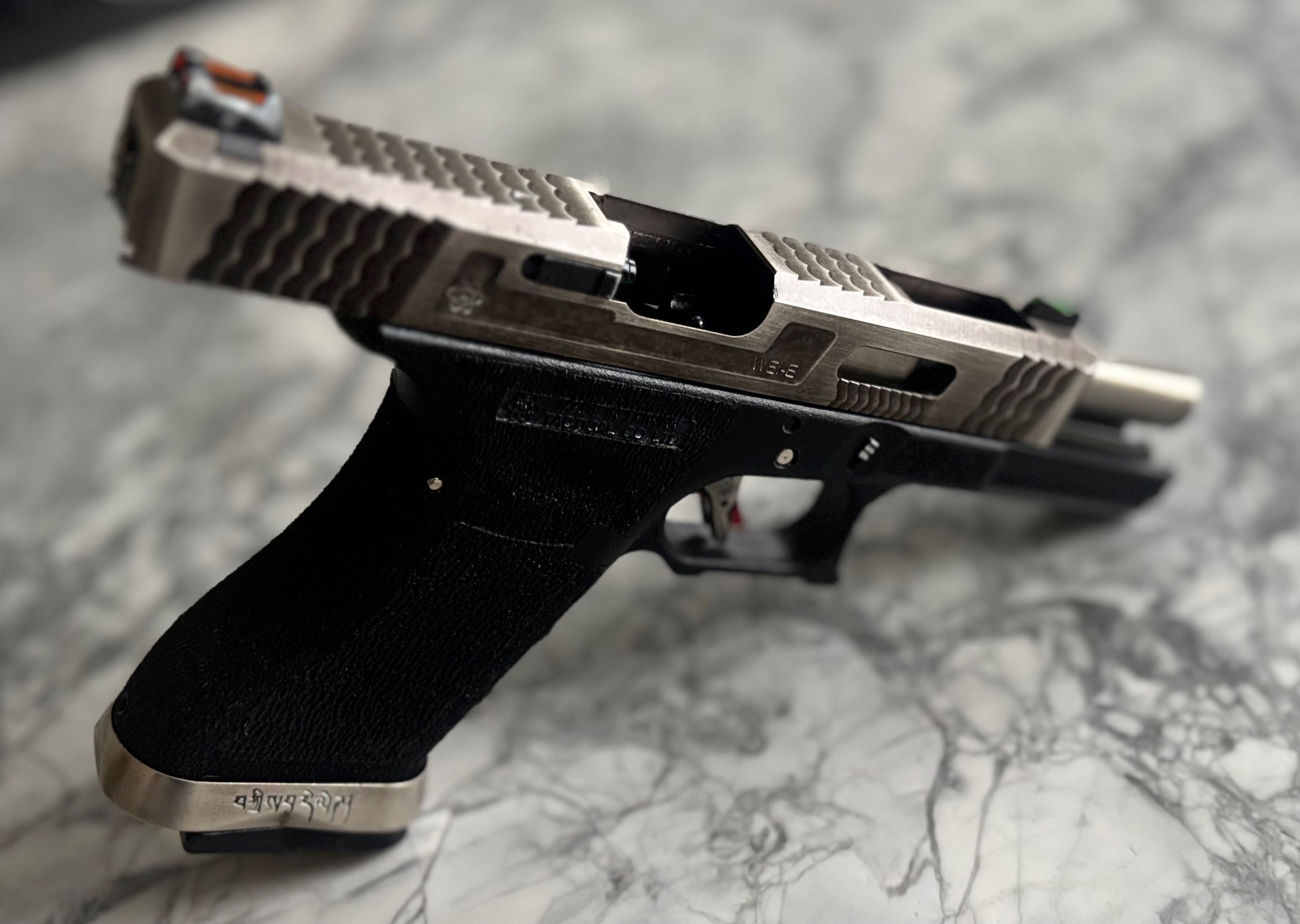 Unieke uitvoering die ik nog niet (vaak) voorbij heb zien komen met mooie tekeningen/markings op de slede en magwell.