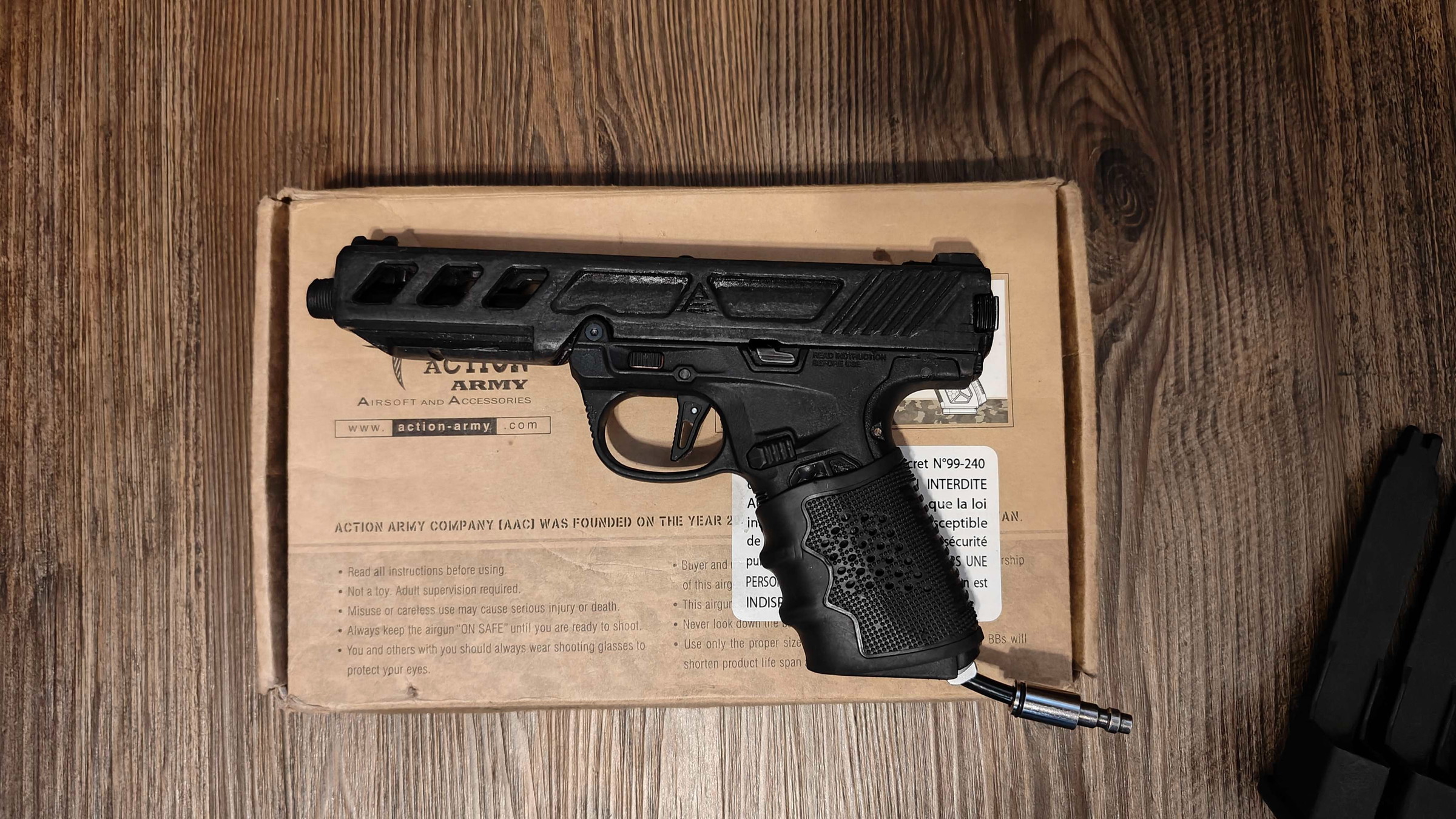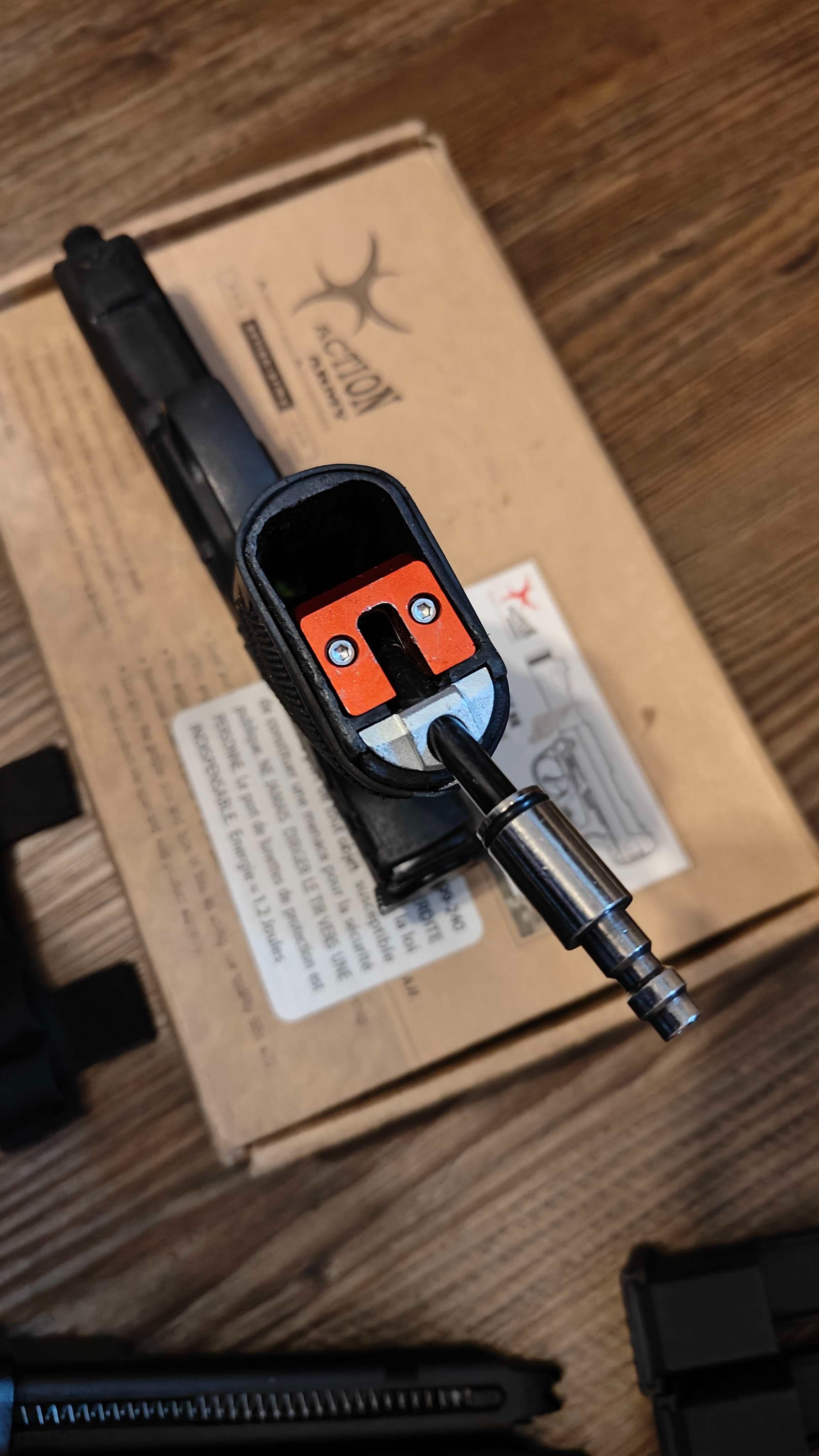 An upgraded AAP-01, converted to HPA using jvtactical (zzz-airsoft) infinite kit. This is a perfect option for those seeking to use the pistol as their primary weapon in speedqb or cqb and whatnot, as it's tuned to perfection.