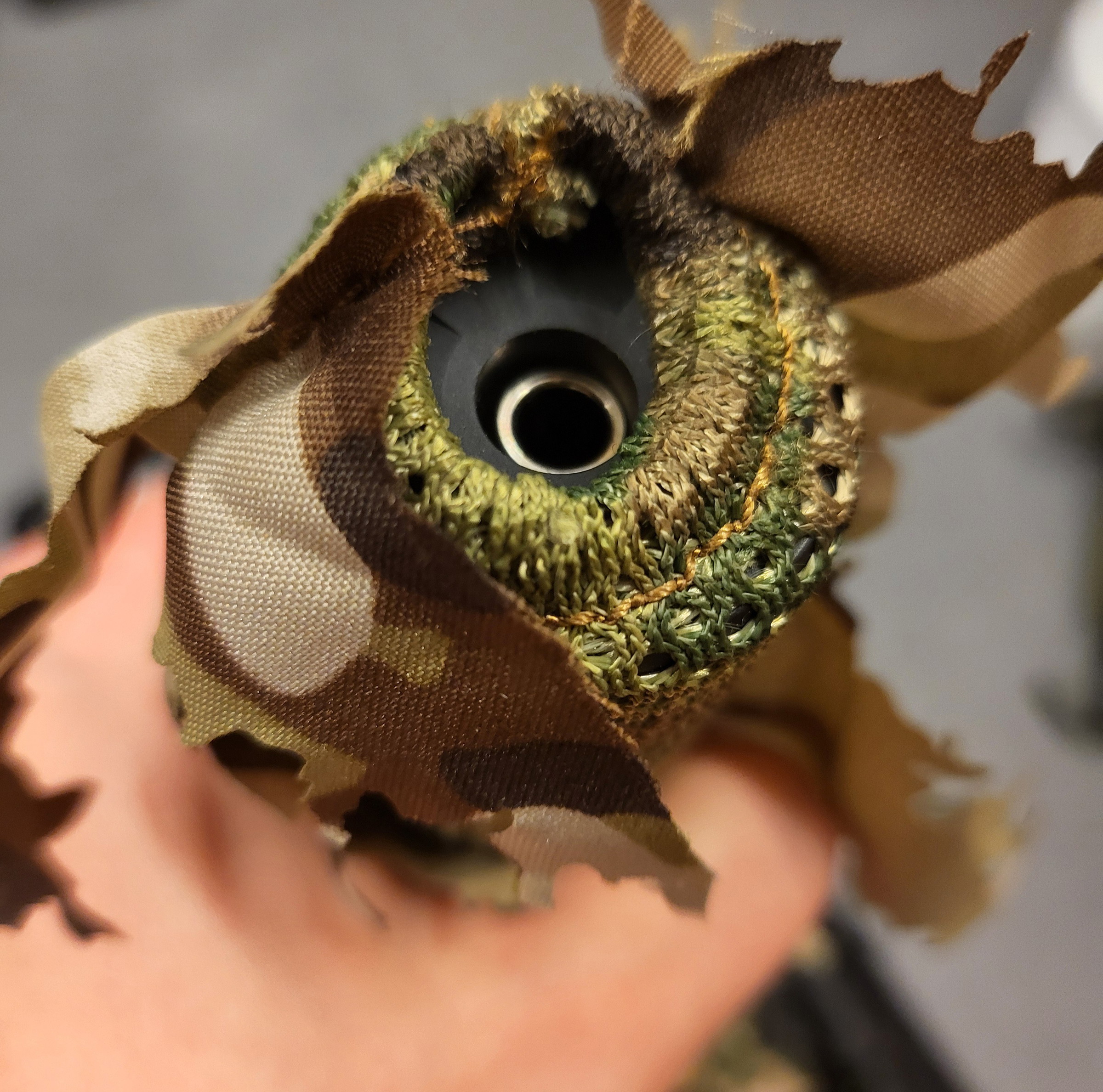 Die Waffe hat auch einen entsprechenden Schalldämpfer bekommen der Perfekt mit dem innenlauf abschließt. Die 3D Camo am Silencer sitzt wirklich sehr fest weshalb ich sie erst einmal drann gelassen habe, kann man aber natürlich entfernen, ist dann nur Nervig wieder drüber zu bekommen. Des Weiteren habe ich vorne eine kleine Rail verbaut um den Griff aufnehmen zu können. Zweiteiliges Zweibein ist auch dabei und lässt sich super am M-Lock Montieren.