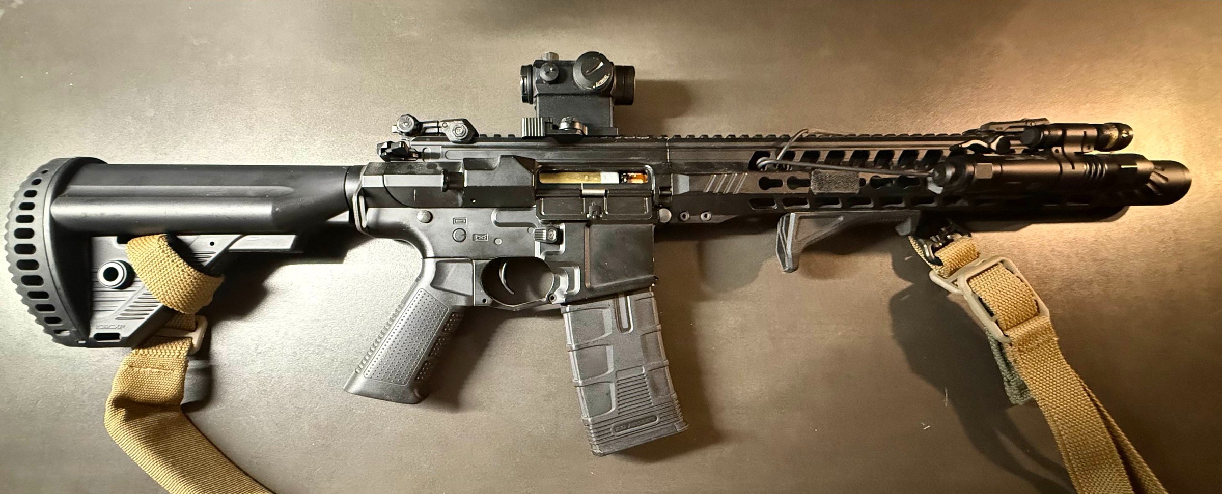 Everything works fine. There are use marks on the rifle and accessories, and some magazines have some surface damage, but performance is unaffected.