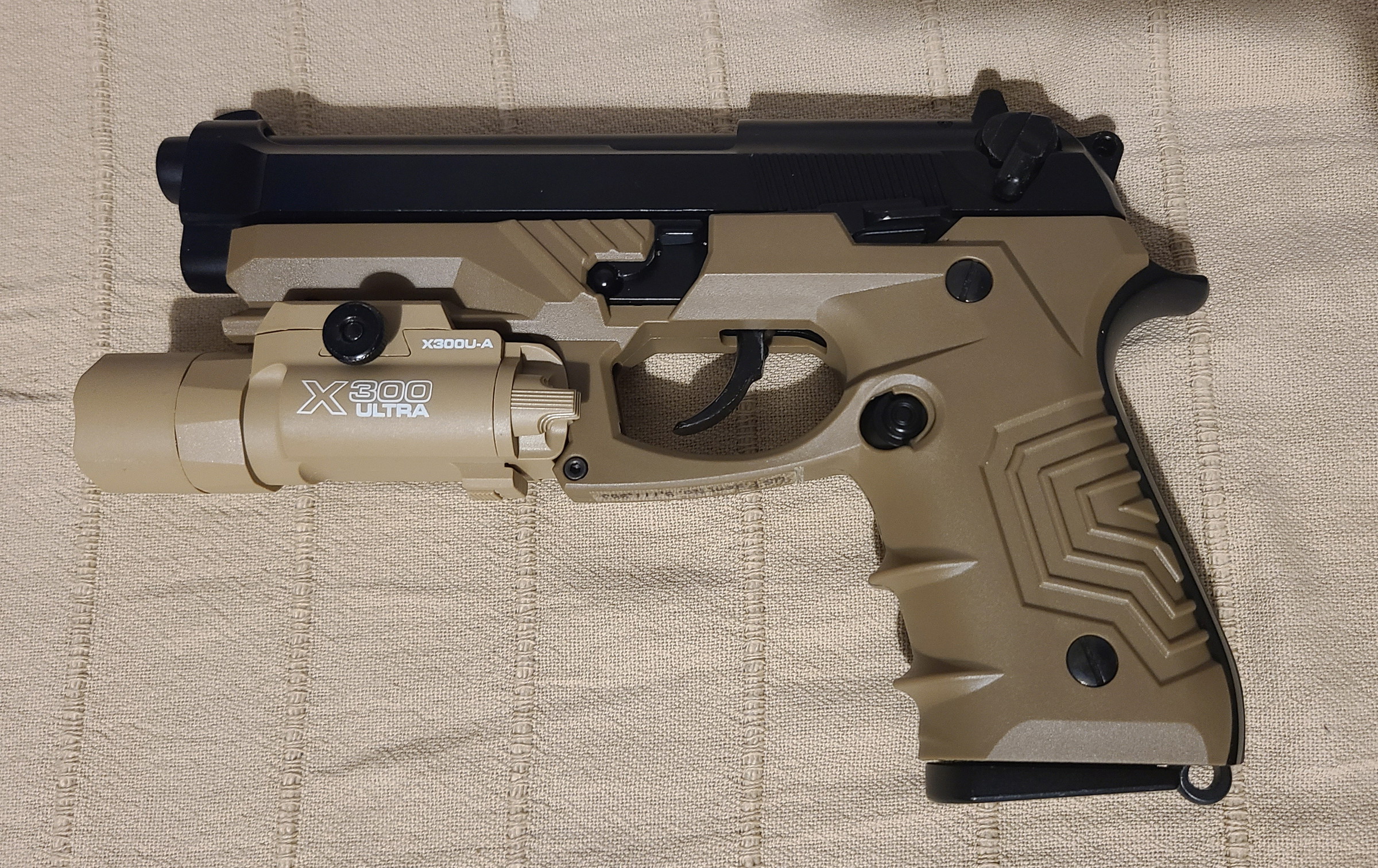 M9 GripTac Airsoftpistole Vollmetall GBB coyote inkl.