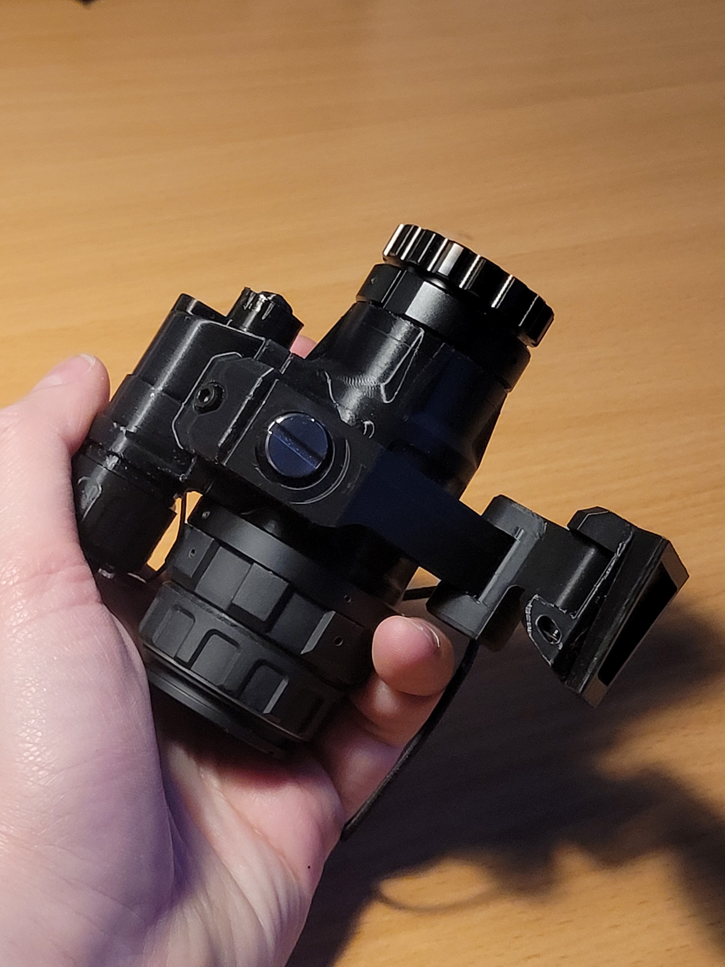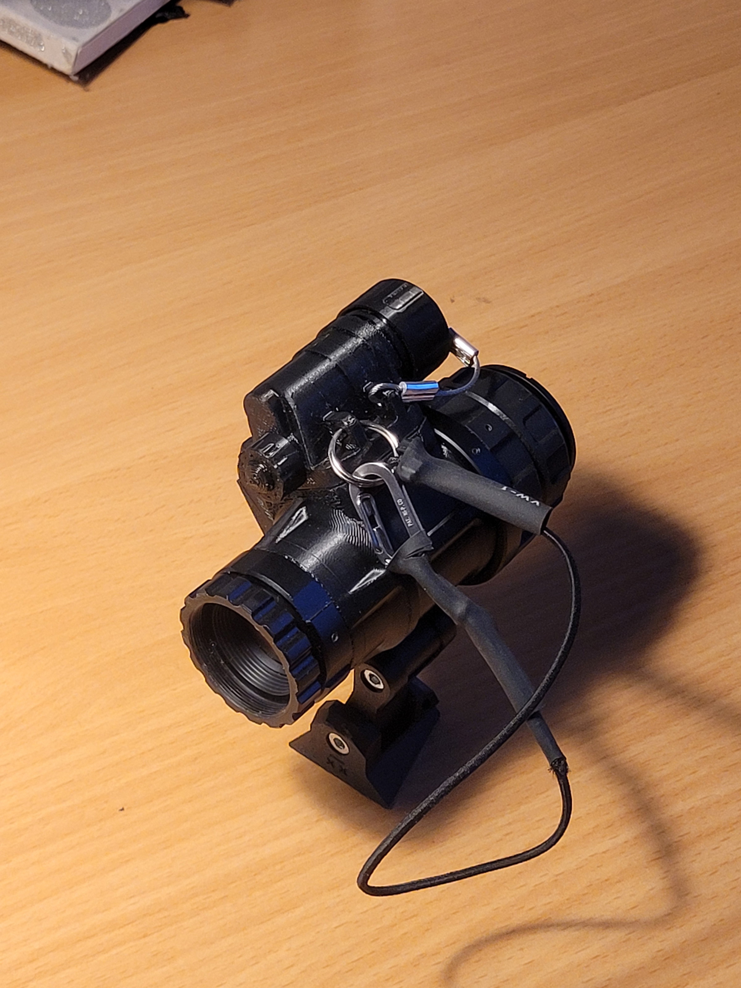 Device comes with 3D printed functional J-ARM compatible with Wilcox style dovetail mount