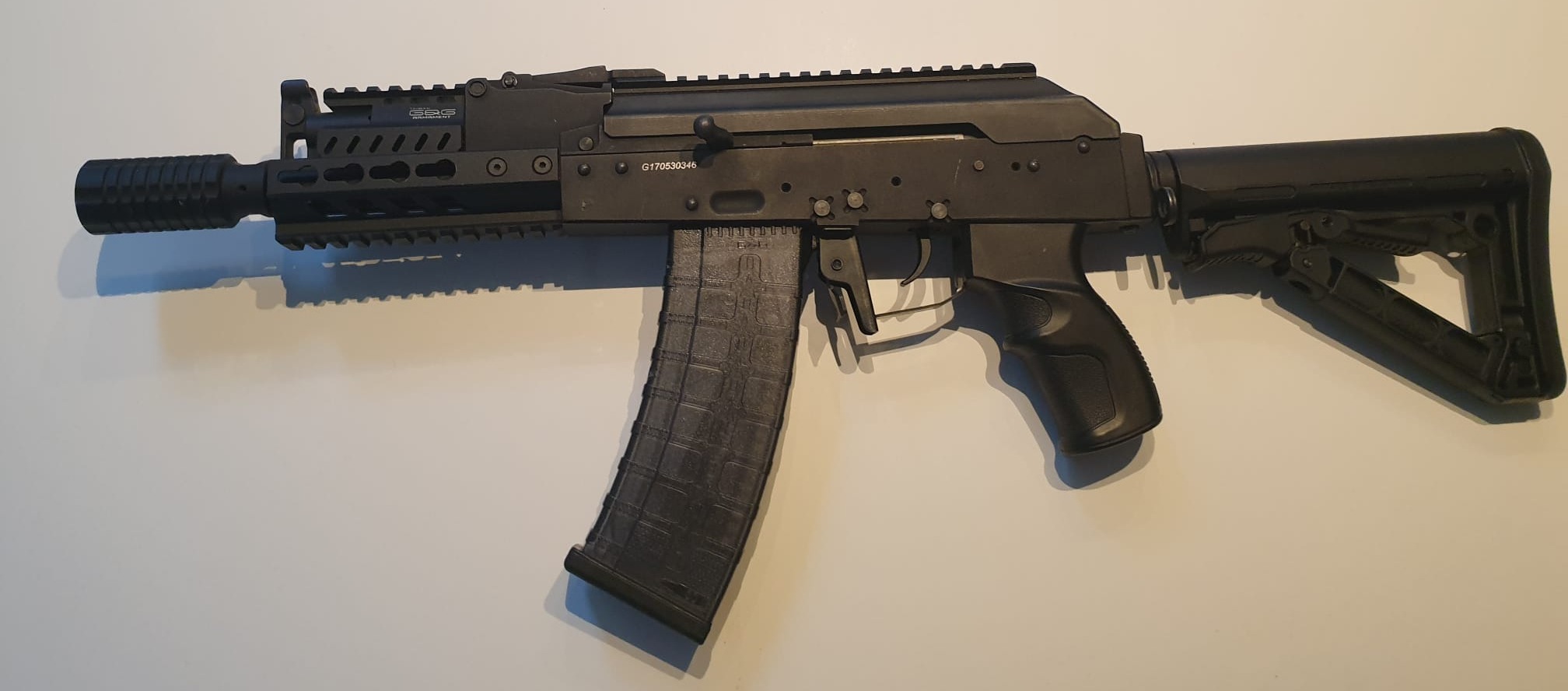 De RK74-CQB is een tactische assault rifle met AEG-aandrijving, perfect voor CQB-gevechten en veldspelen. Dit model combineert het klassieke AK-platform met moderne montageoplossingen en een robuuste metalen constructie die direct opvalt door zijn professionele afwerking.