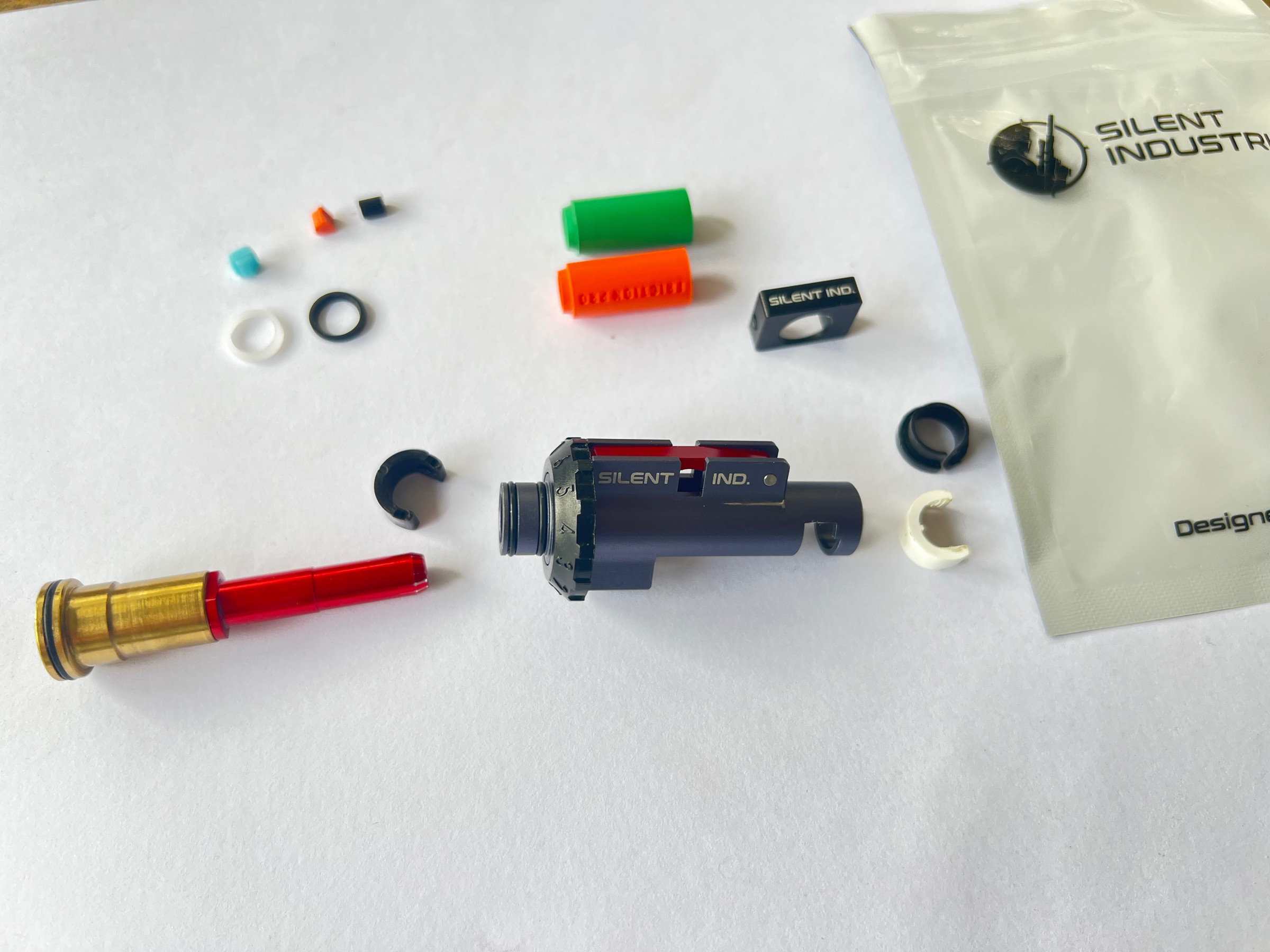 Silent Industries Hopup unit met 3 verschillende maten bucking lip ringen.
