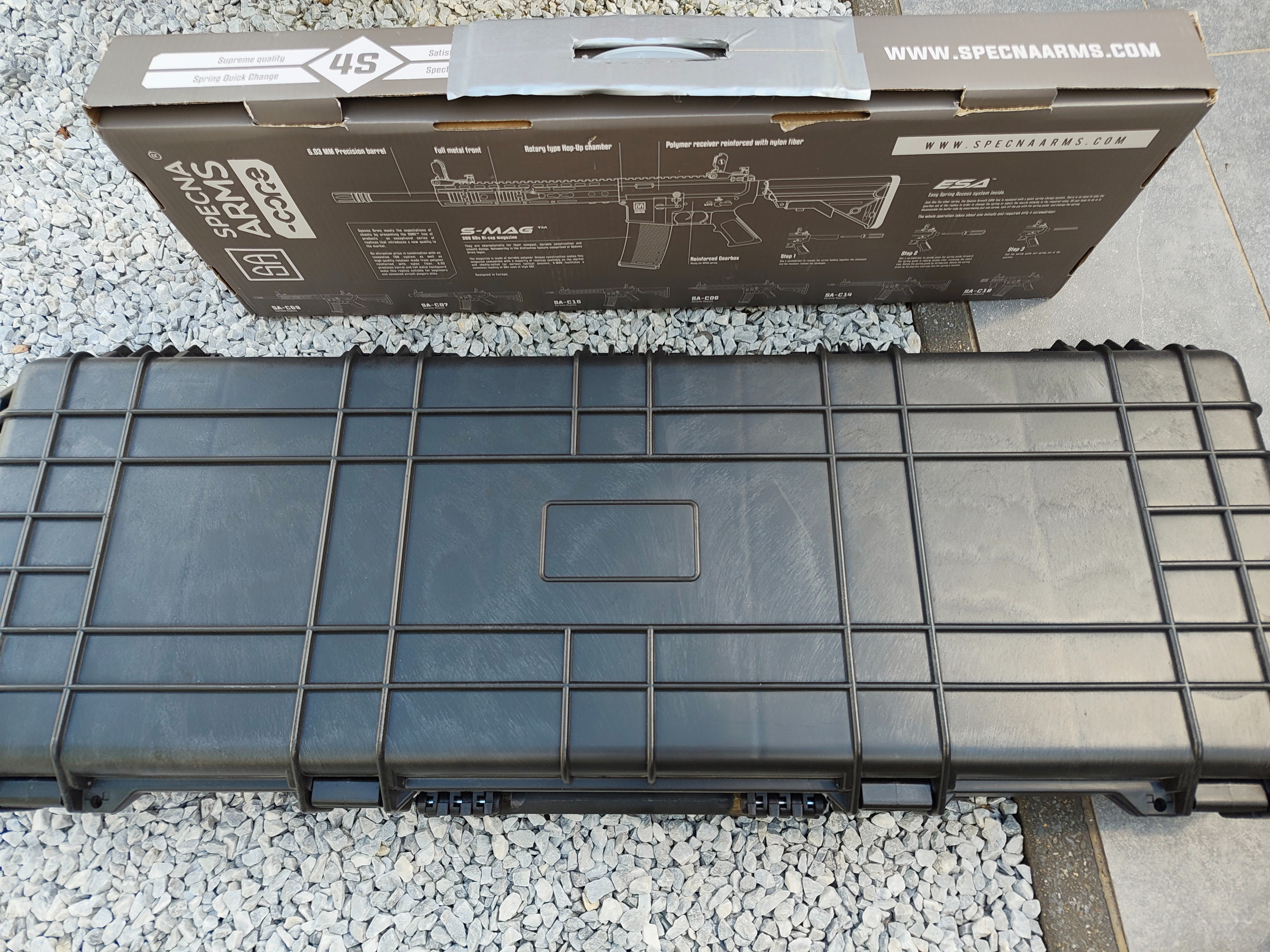 Ik doe dit wapen weg omdat ik ondertussen vooral binnen speel en nu vooral mijn pistol gebruik. Deze Specna Arms SA-CO5 schiet perfect.