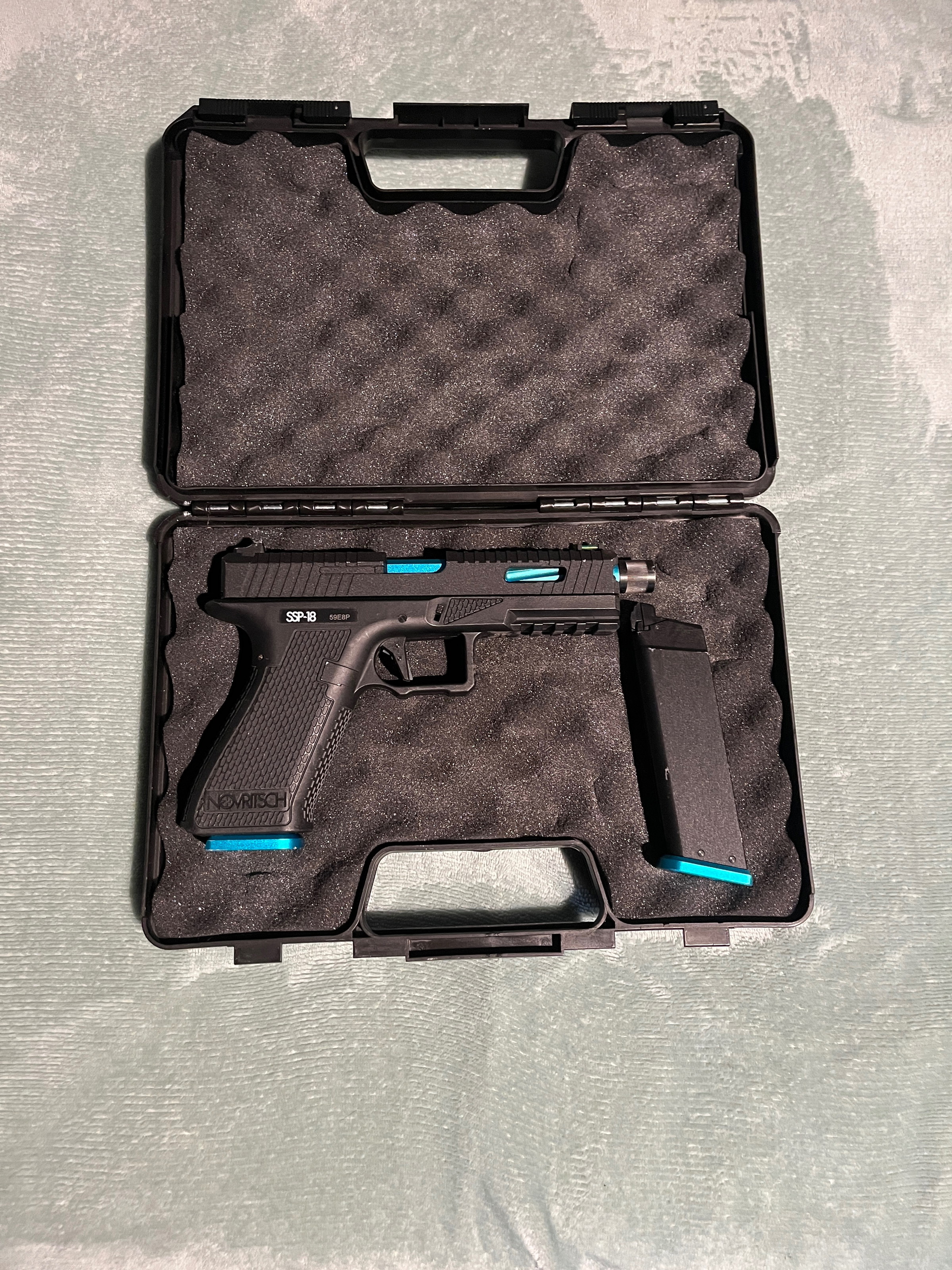 Ich verkaufe meine SSP18 (Semi only, F-Kennzeichen). Die GBB ist in einem guten gebrauchten Zustand, es sind keine Mängel vorhanden und nur Standard Gebrauchsspuren vorhanden (bspw. am Außenlauf durch den Schlitten, Magazine, Holster ziehen leicht verkratzt). Die Airsoft hat mir bis jetzt immer gute Dienste geleistet und ging immer perfekt mit meiner SSG96 Hand in Hand. Es gibt einiges an Zubehör dazu: