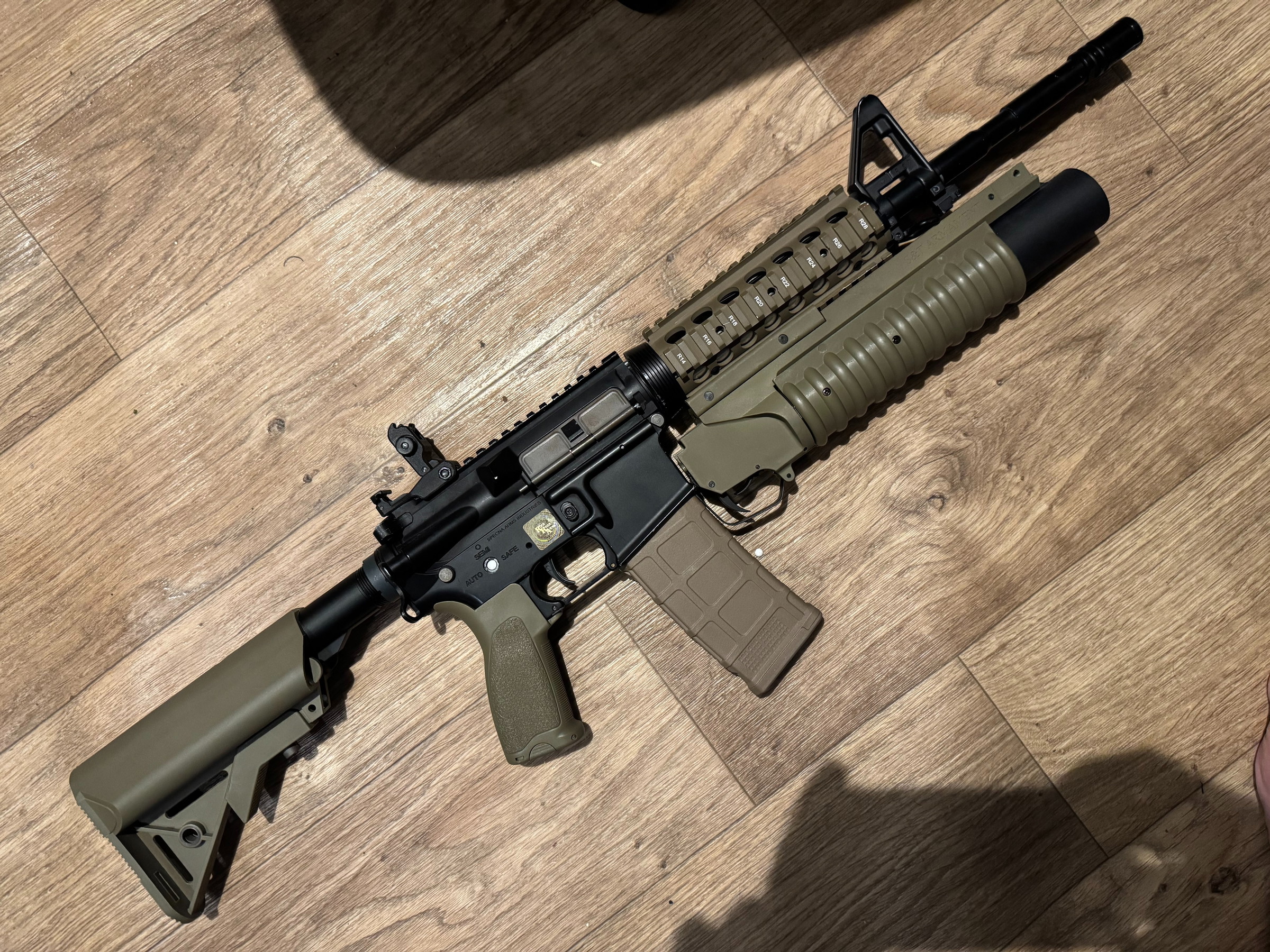 Te koop: Specna Arms Rock River Arms SA-E03 EDGE™ (Half Tan) – met 40 mm granaatwerper