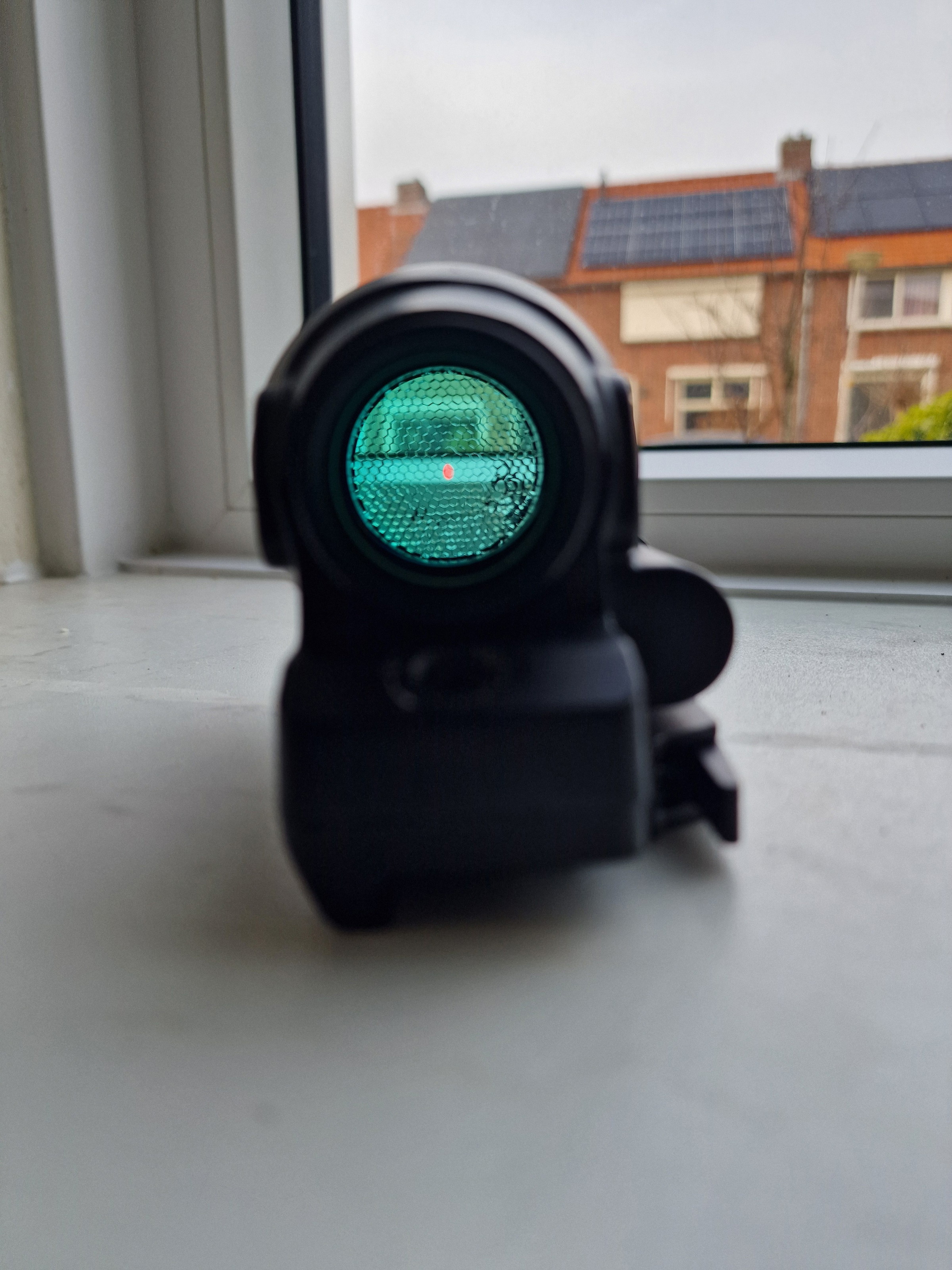 Red dot Trijcon SRS reproductie werkt netjes naar behoren is inclusief bb shield (heeft zijn werk al eens gedaan)