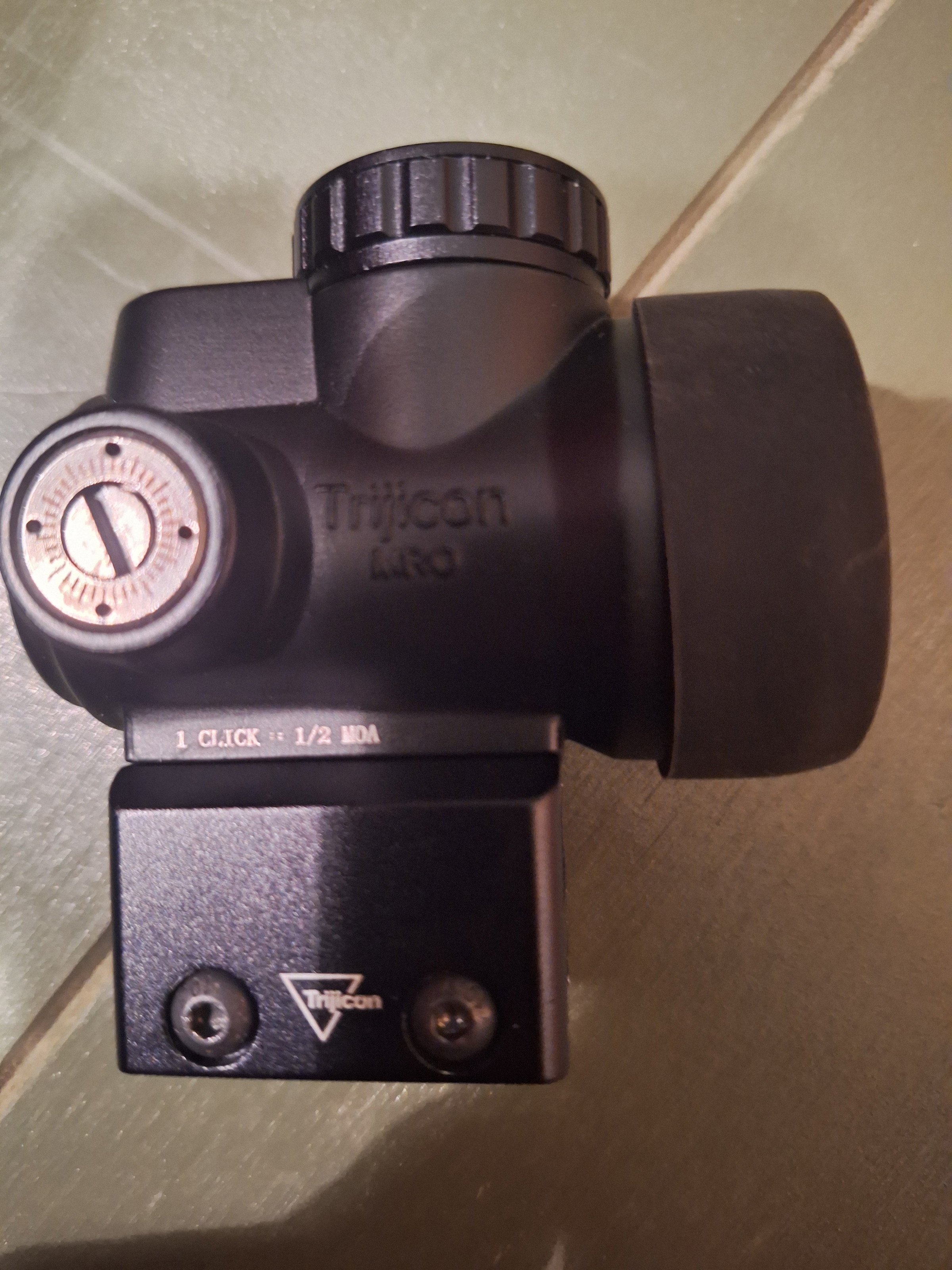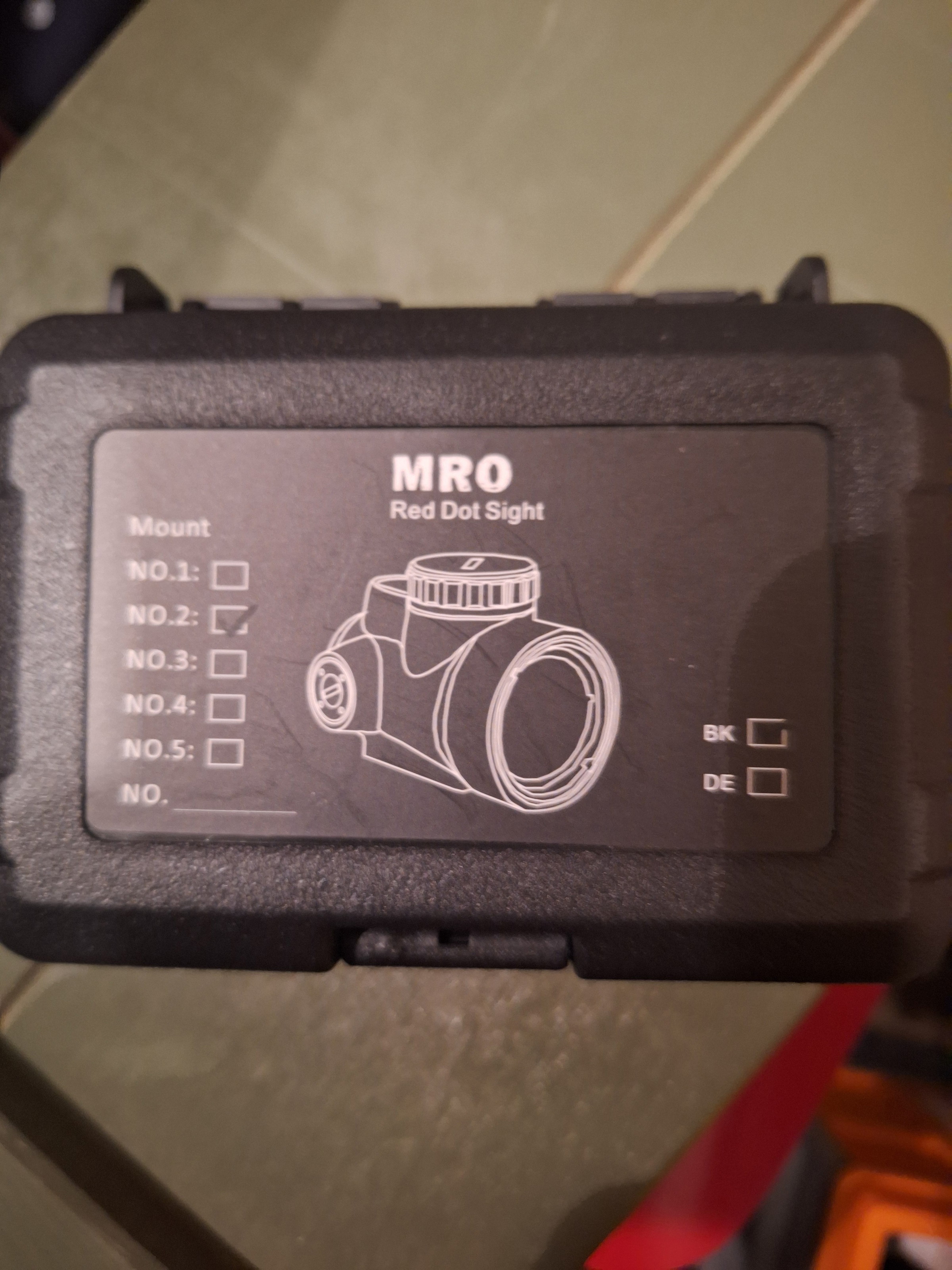 De reddot werkt perfect.  De dot zelf is een Eotech circle. Dit is niet echt duidelijk op de foto, ik kreeg de reticle niet scherp op de foto. Komt met opbergdoos.  Er zit een beschermlaagje voor de reddot.