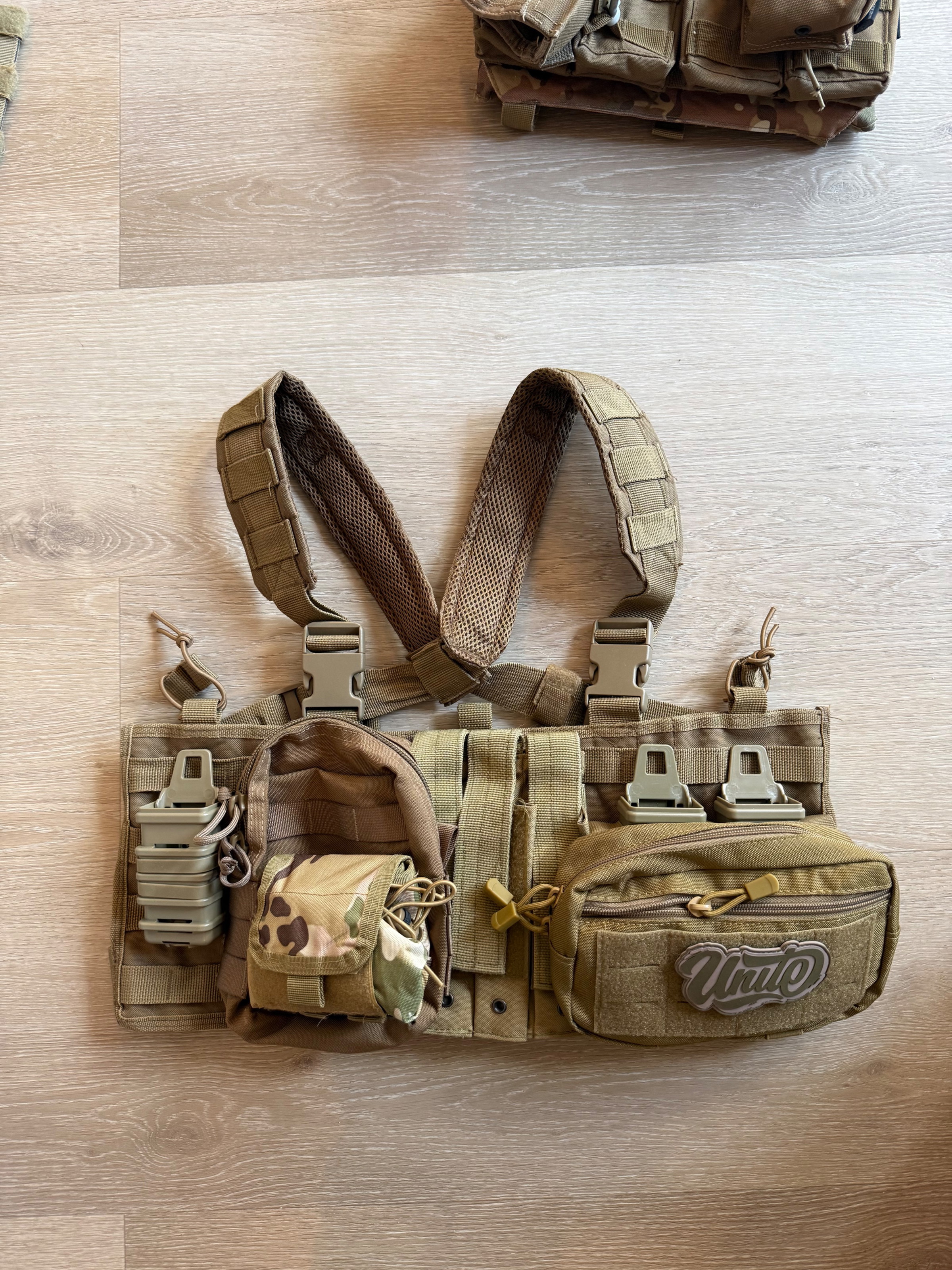 Lichte en functionele chest rig setup, ideaal voor CQB en speedsoft. Compact, overzichtelijk en direct inzetbaar zonder overbodige bulk.