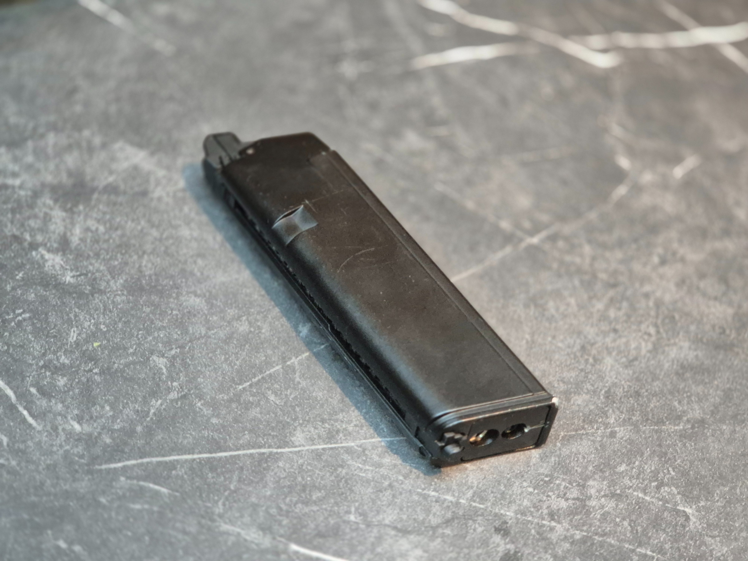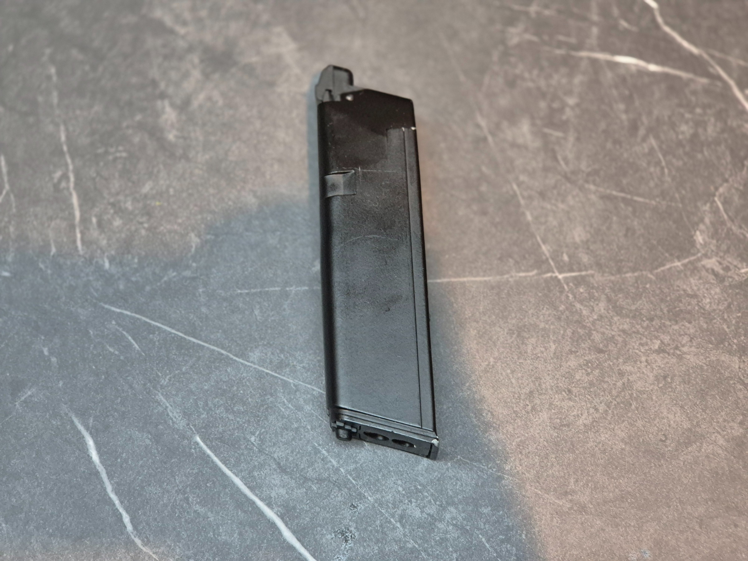 Lekvrije magazijn voor een Glock 17. Het merk van het magazijn is Umarex. Alles werkt naar behoren, mist alleen het kapje aan de onderkant.