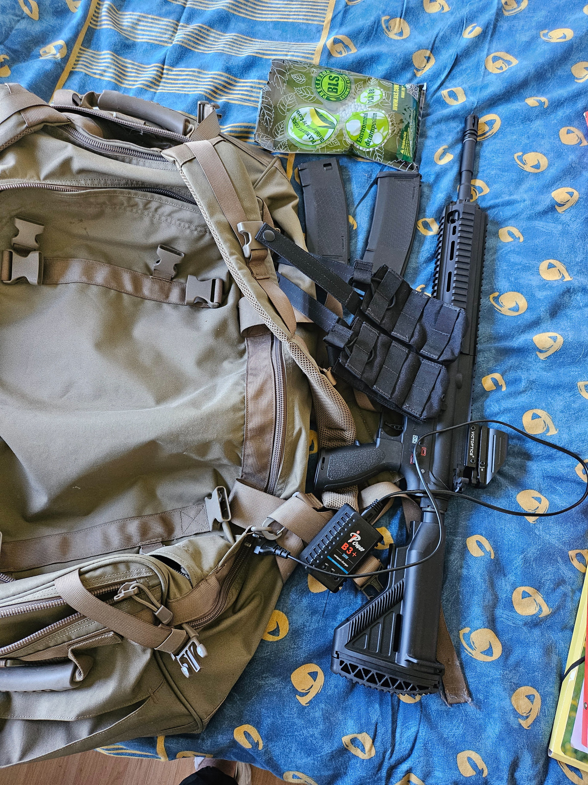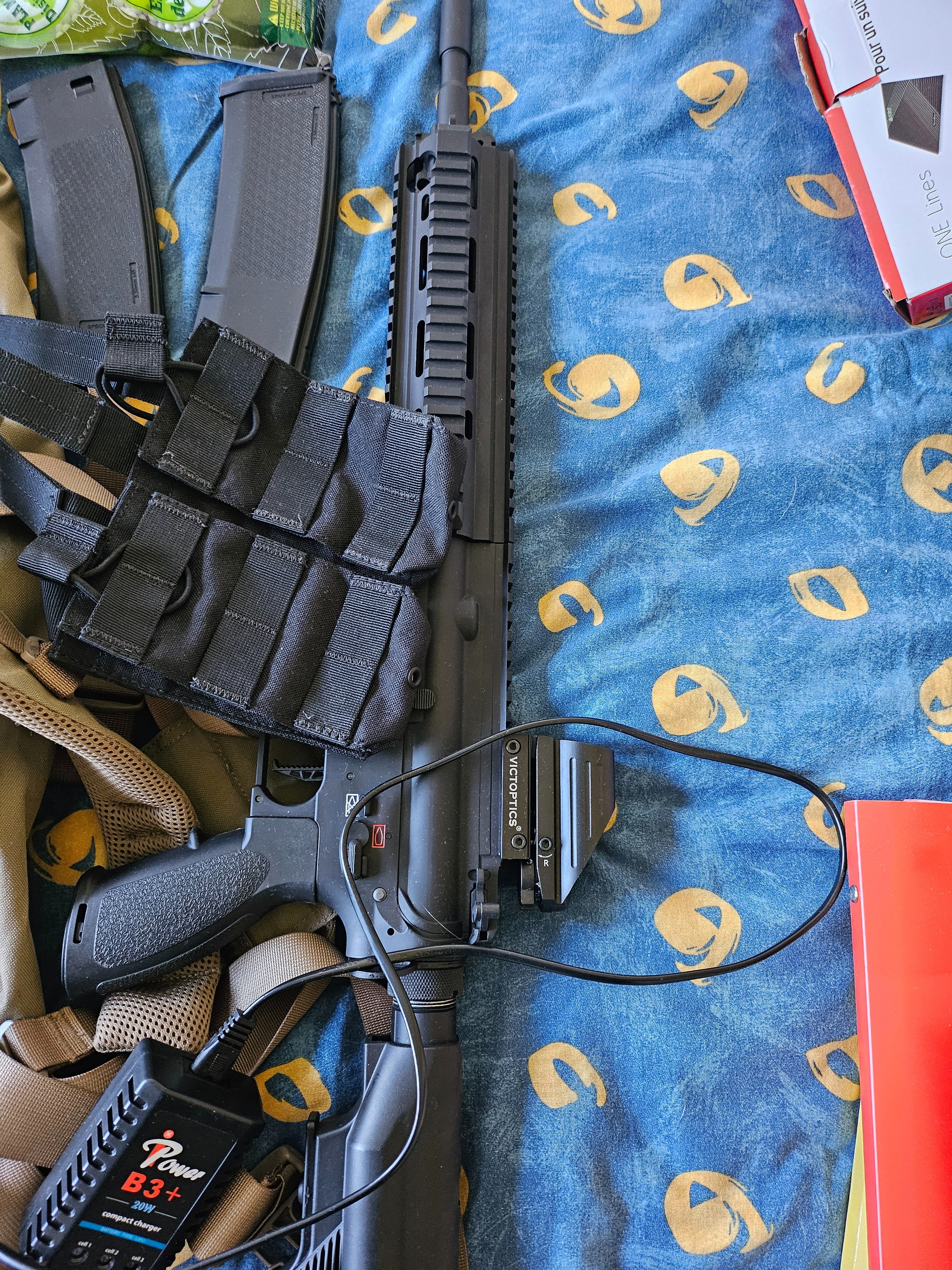 Bonjour,je mets en vente mon équipement airsoft neuf servi une fois car je n'ai pas eu l'occasion d'en refaire juste après. Je n'en ai plus vraiment l'utilité. Bien sûr il y a un chargeur supplémentaire plus un porte chargeur un sac de billes pleins et des mitaines renforcés neufs car jamais mis.