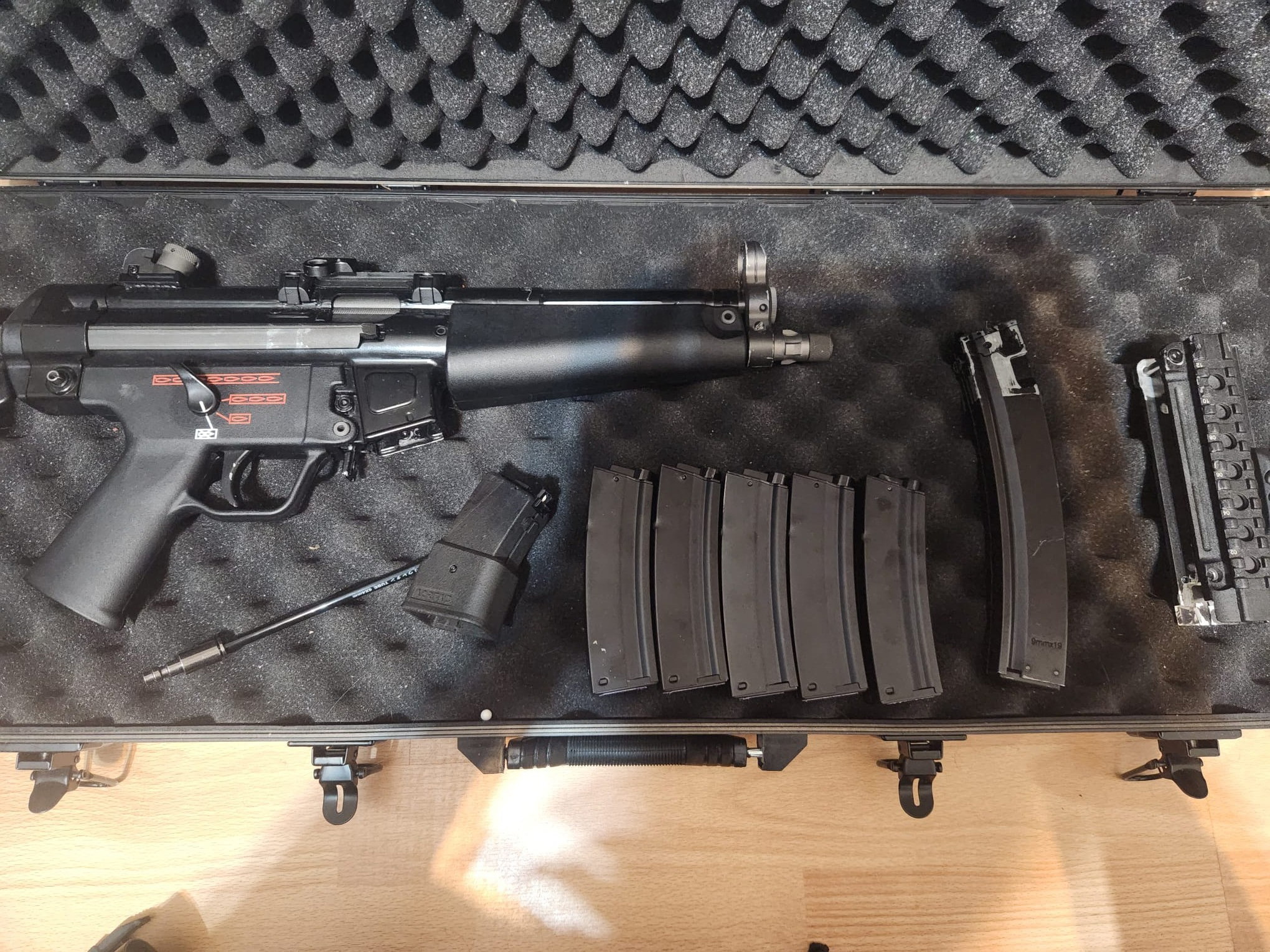 Hierbij verkoop ik mijn Mp5 apache vanwegen overstappen naar speedsoft, het is een prachtige replica met wat gebruikers sporen op de gebruikelijke plekken. zit een quad4 bucking in waardoor hij lekker recht schiet, komt met 5 lowcap mags en orgineele mag die gebruikt is als donor.