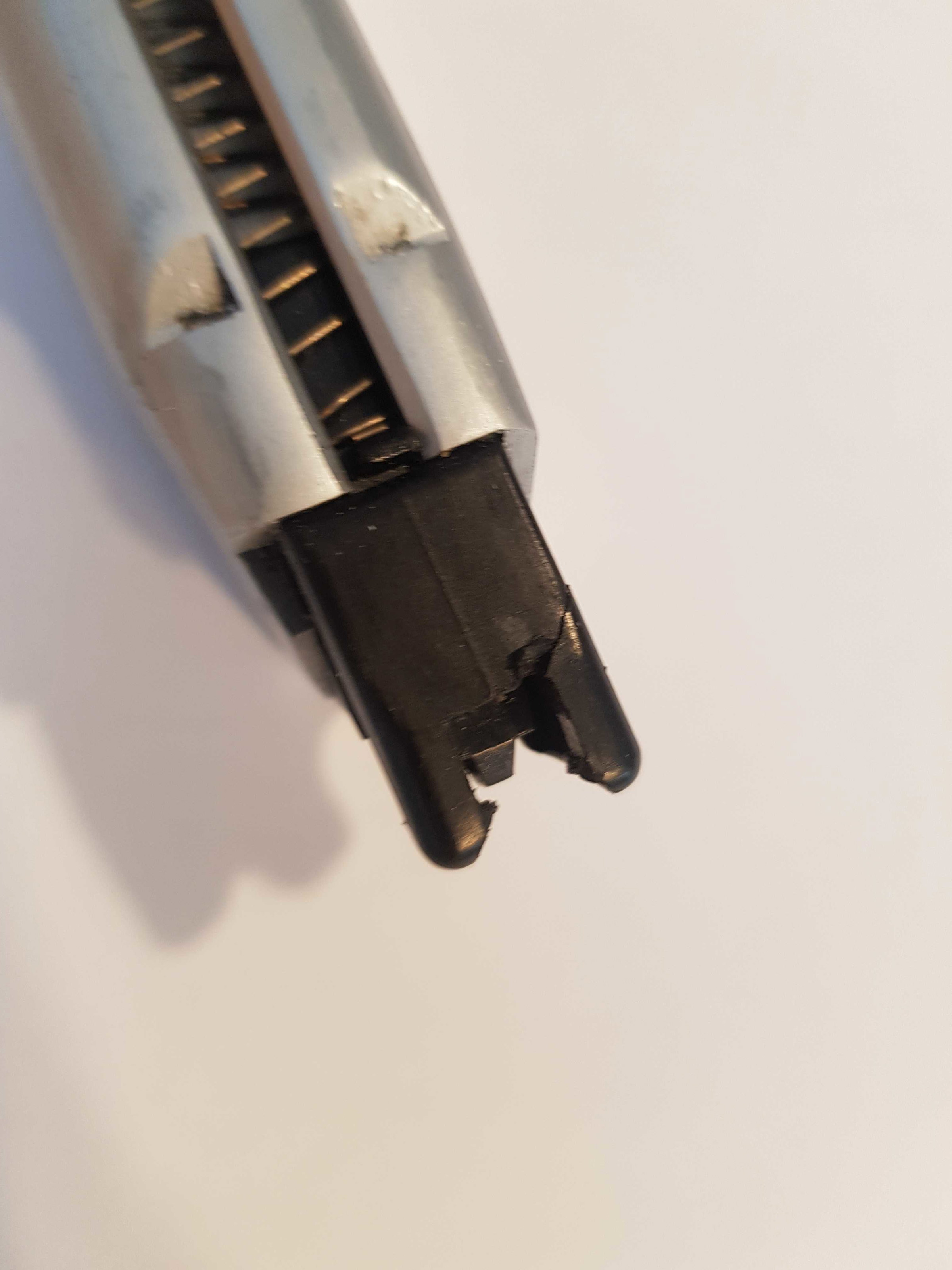 Hij komt met 4 magazijnen,  3 lekvrij, 1 lekt. Van 1 zijn de feedinglips gebroken. Dus je kan van het lekkende magazijn de feedinglips overzetten en dan heb je 3 werkende lekvrije.