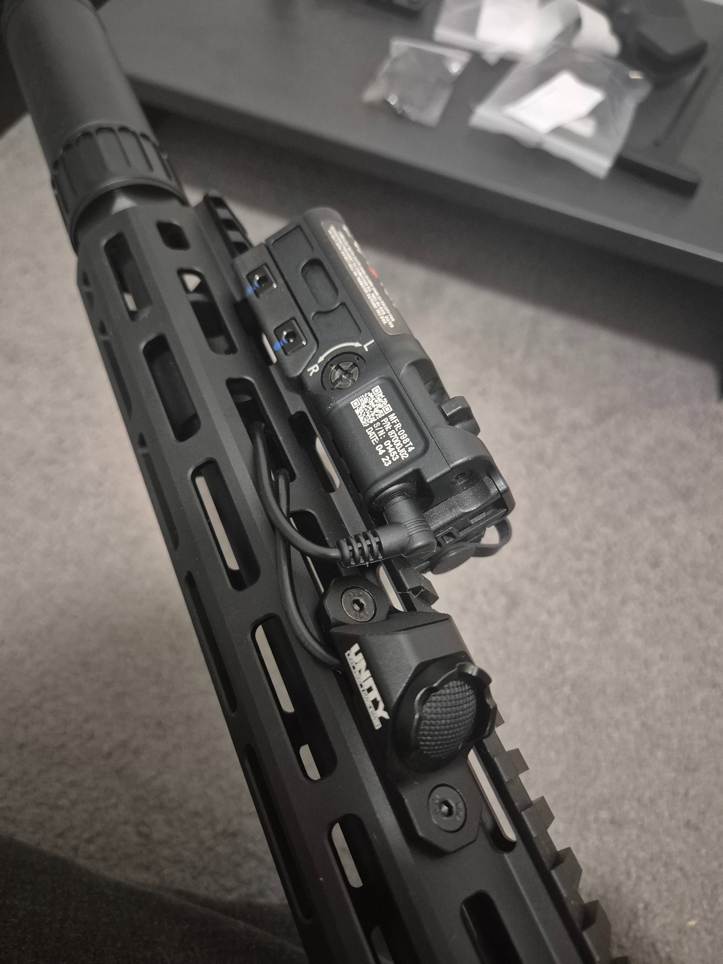 De helderheid van de laser kan middels de plus en min knop aan de bovenzijde aangepast worden. Tevens is de laser lager dan de dbal-a2, waardoor deze gebruikt kan worden icm een red dot zonder riser. De laser heeft ook IR functie, ideaal icm nachtvizieren!