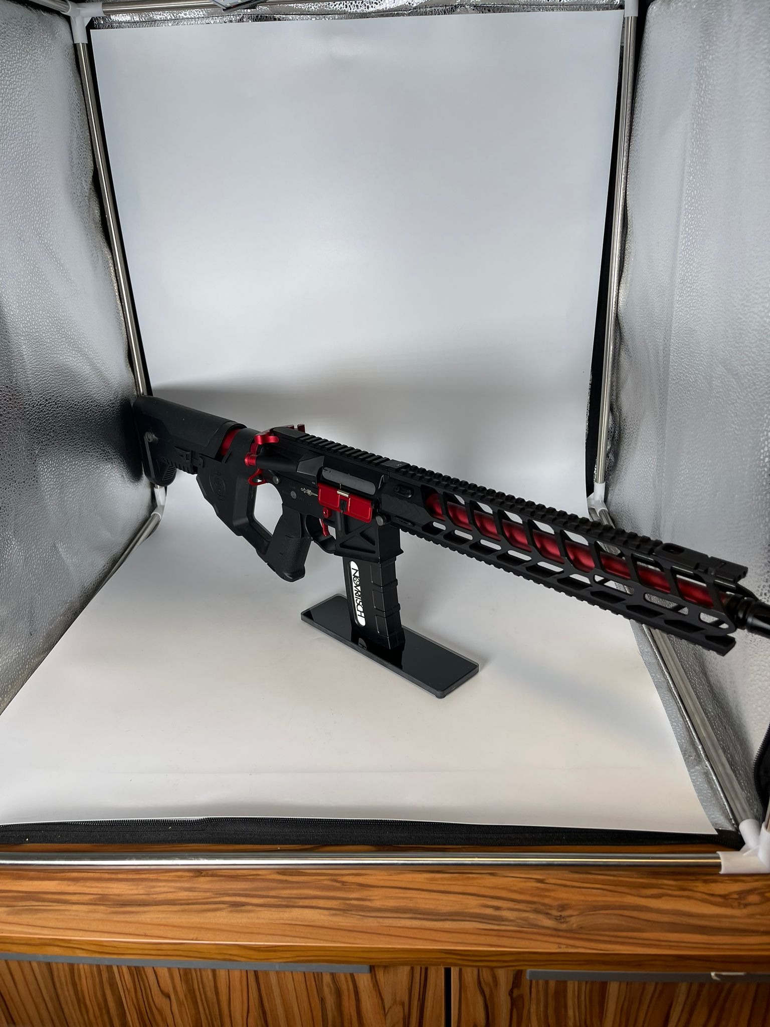 Zum Verkauf steht eine AEG MK2 Type-A 12" GEN 2 von Lancer Tactical in der Black/Red-Variante. Die Airsoft wurde nur bei einem einzigen Airsoft-Spiel verwendet und befindet sich daher in neuwertigem Zustand. Technisch wie optisch ist alles einwandfrei, keine Beschädigungen oder Abnutzungsspuren.