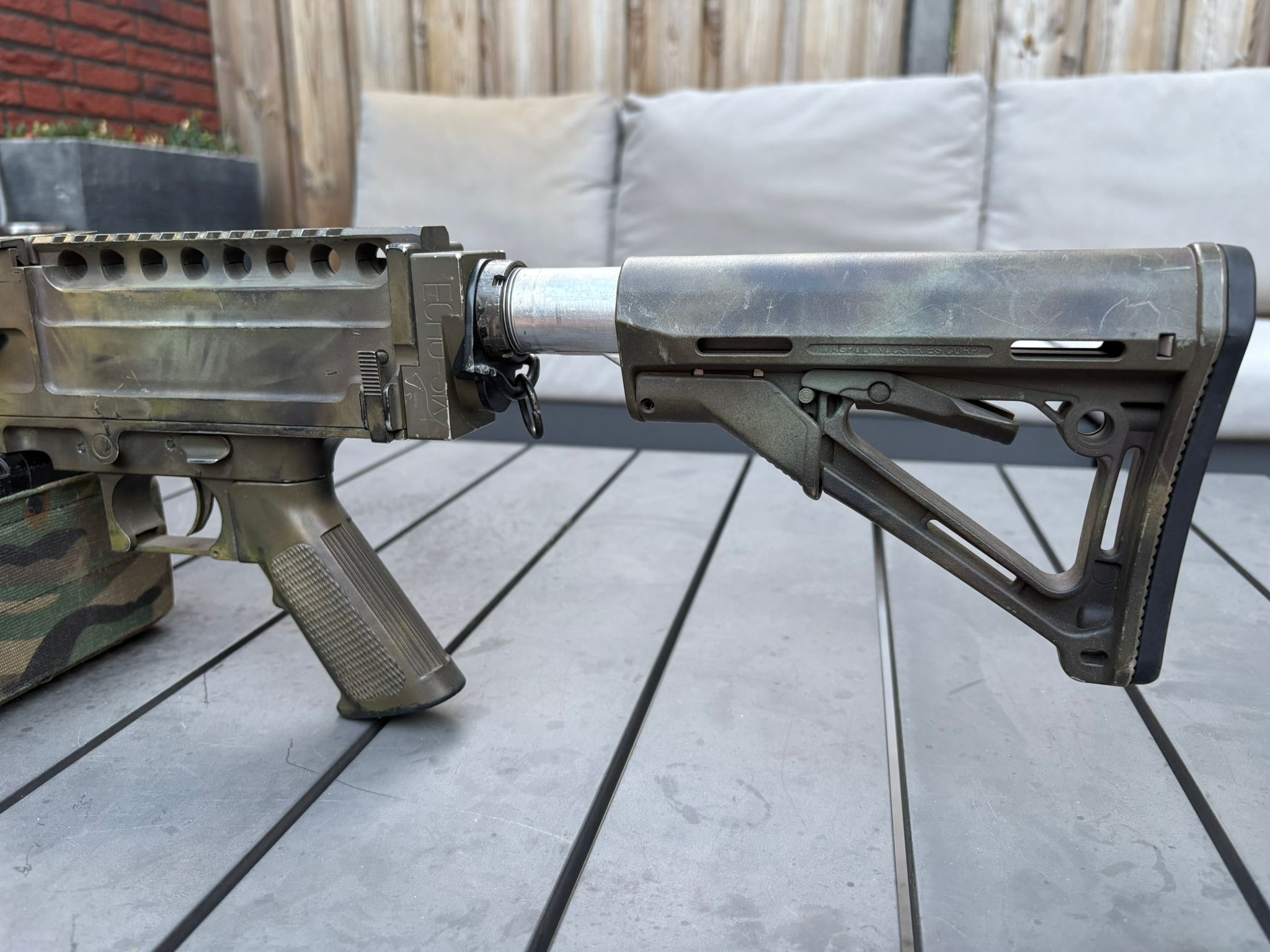 Custom cnc alu blok gemaakt voor de stocktube van een ptw te monteren. Hierin kan de accu geplaatst worden. Ook is de outer barrel speling vrij gemaakt en innerbarrel ook. Om betere accuratie te krijgen.