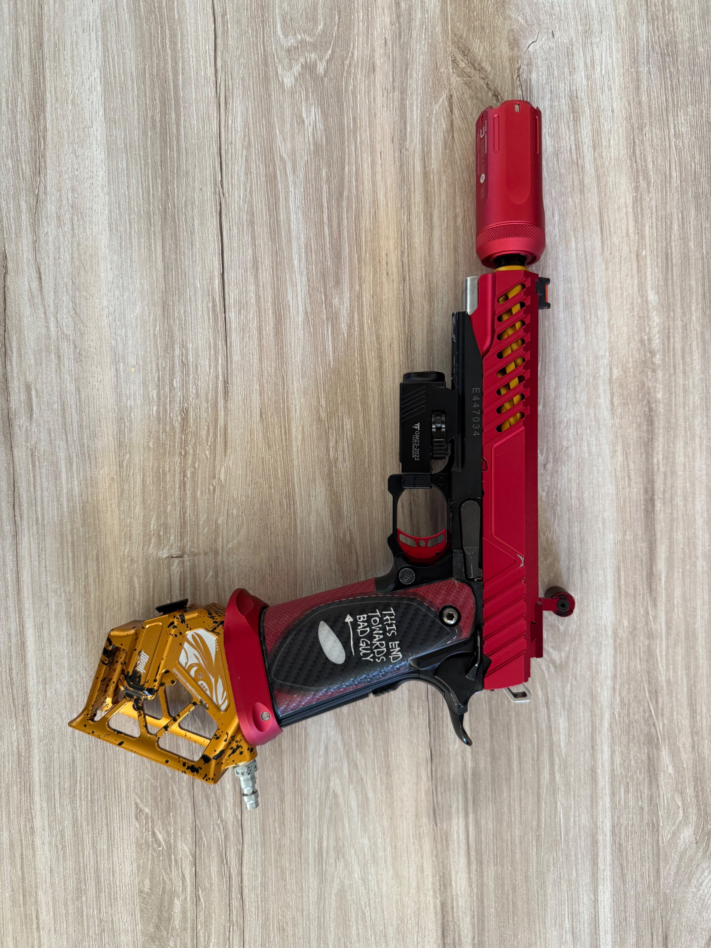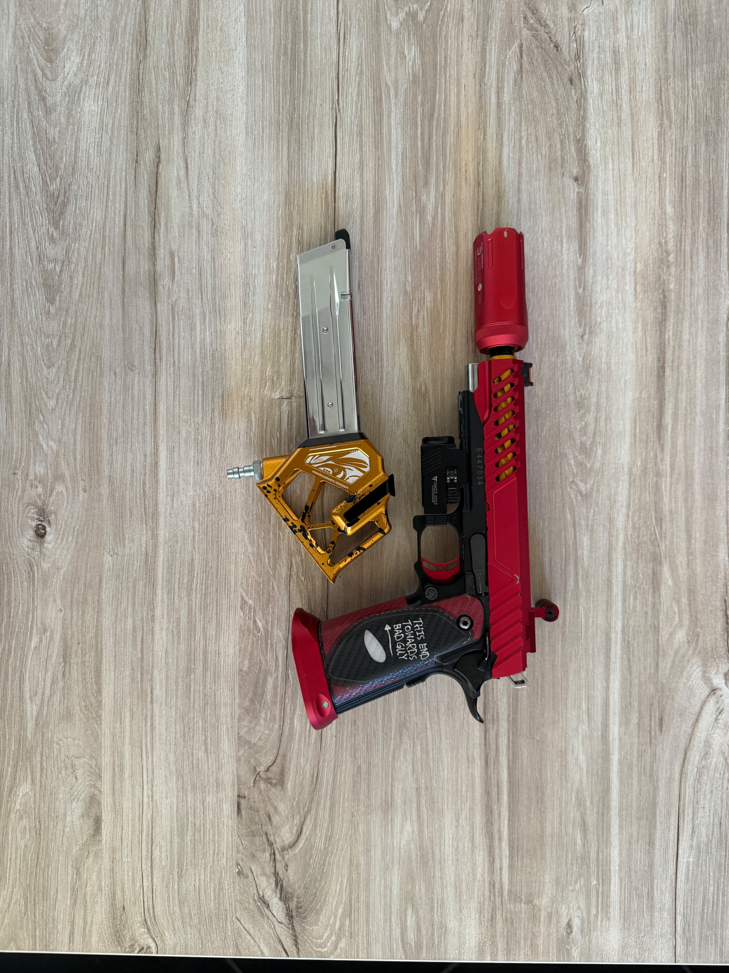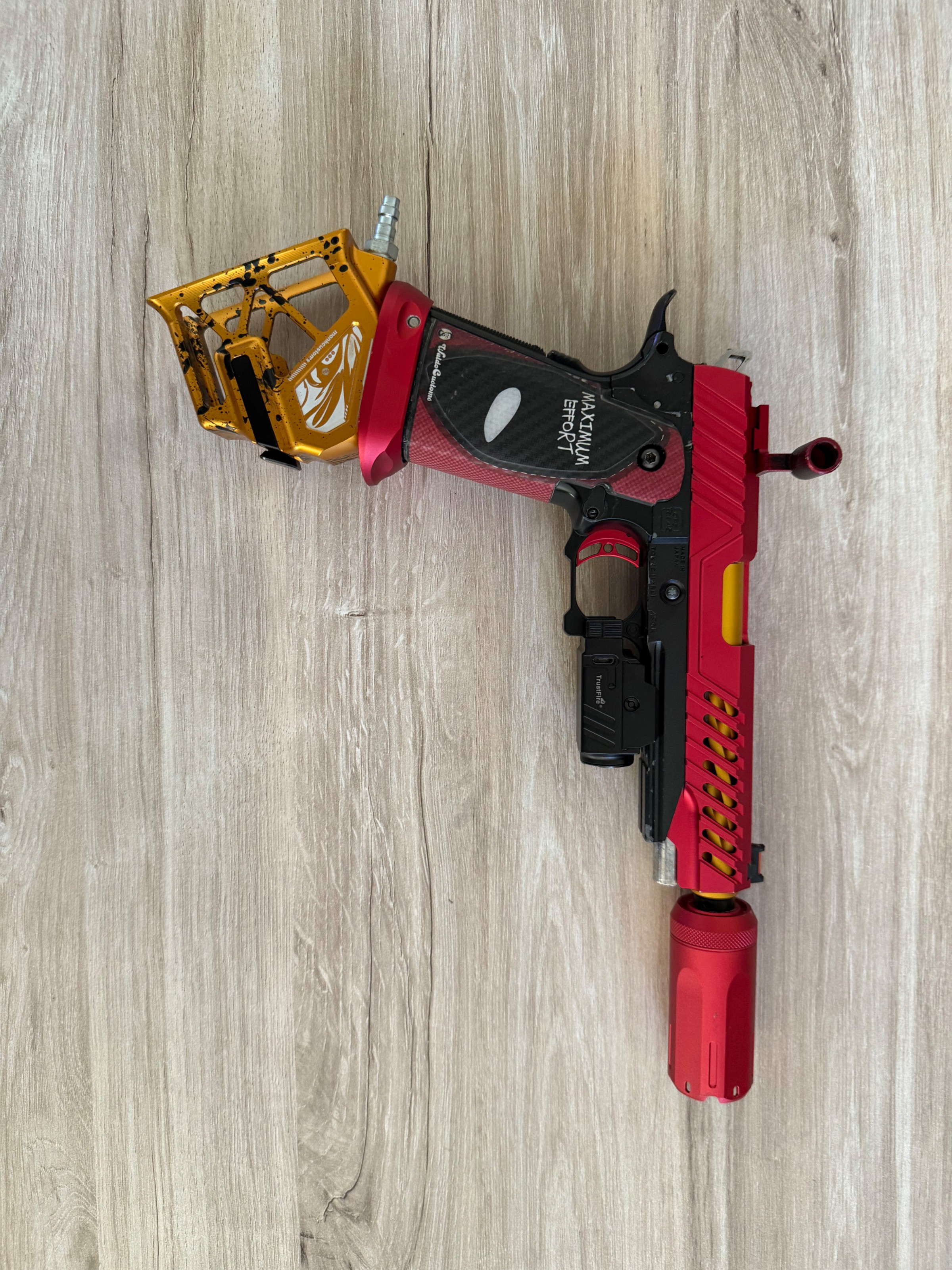 Custom Hi-Capa in opvallende rode/gouden stijl, volledig HPA ready.