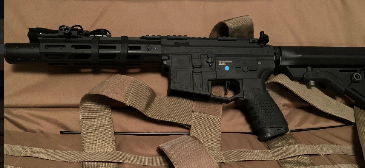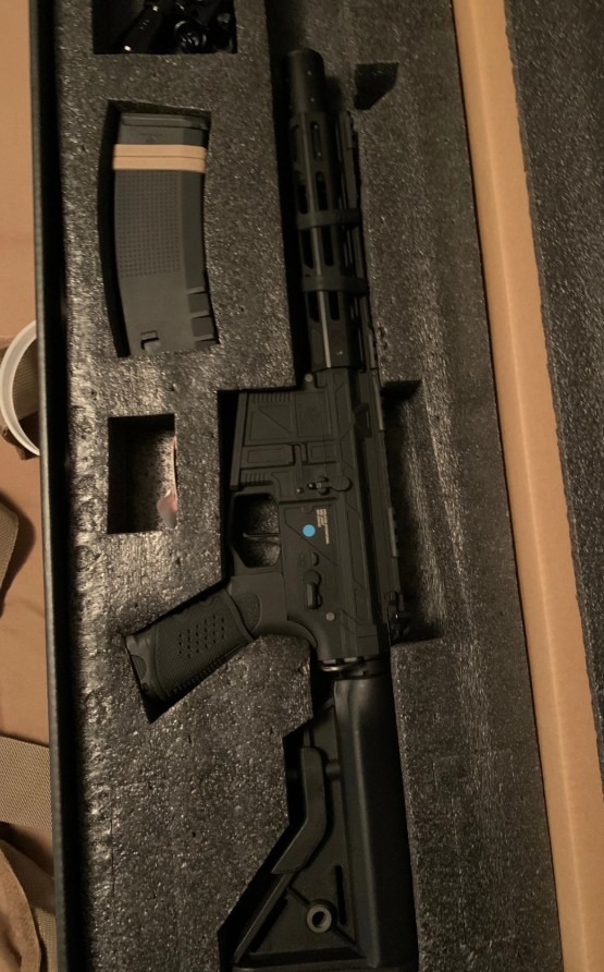 Komt inclusief magazijn, Eotech red-dot en flashlight en 2 lipo batterijen