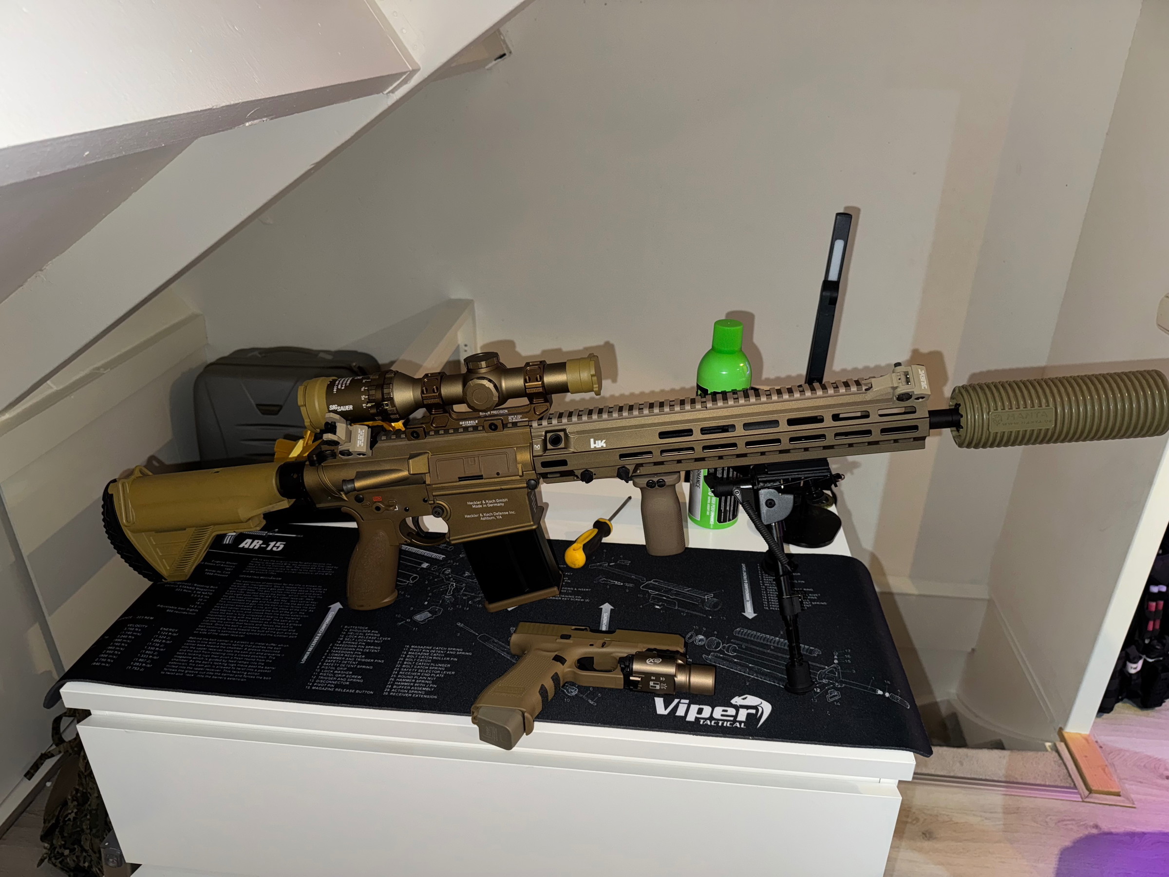 • Inclusief: 1 lekvrije gasmagazijn, bipod, foregrip, Sig Sauer Scope, suppressor en Geisselle scope mount.