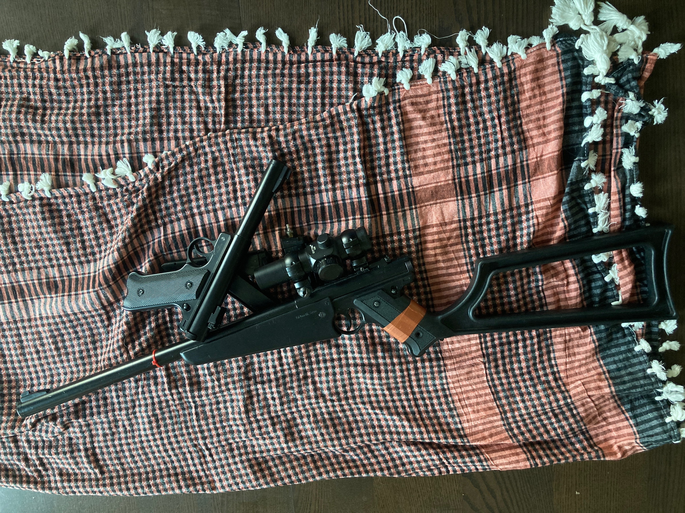 Das perfekte Paar für verschiedene Situationen, Magazine können für beide genutzt werden. Ein Magazin mit HPA Anschluss gibt es zu den zwei normalen Magazinen dazu. Der Karabiner hat ein Rotpunkt ohne Vergrößerung.