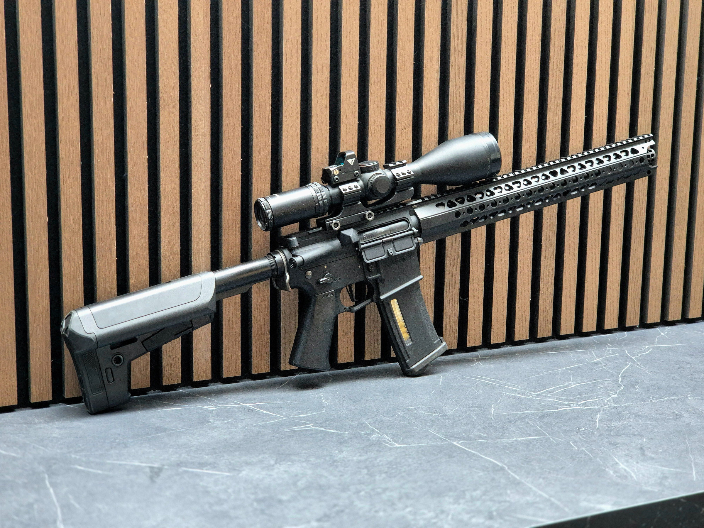 Zeer nette Krytac LVOA Warsport. Alles werkt netjes naar behoren en schiet echt als laser! De replica ziet er nog zeer goed uit en heeft geen beschadigingen. De replica komt met: