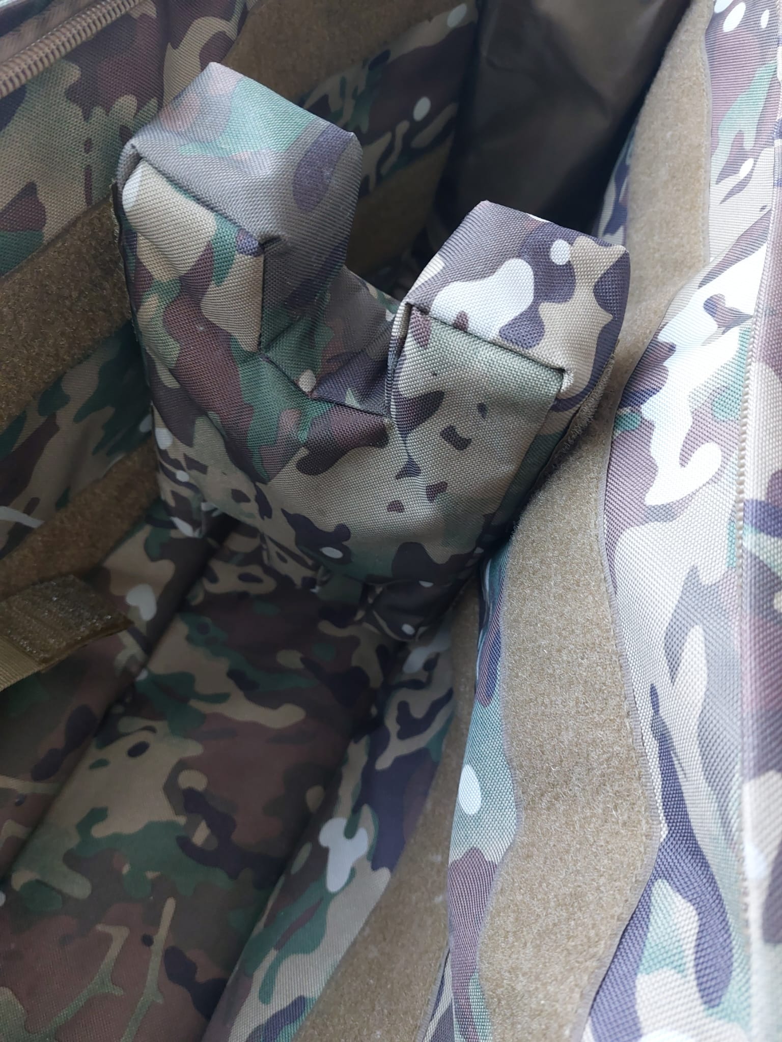Met de bijhorende tussenstukken kan je deze in de tas kleven met de velcro's en zo kiezen of je er een LMG of 2 replica's in stopt.