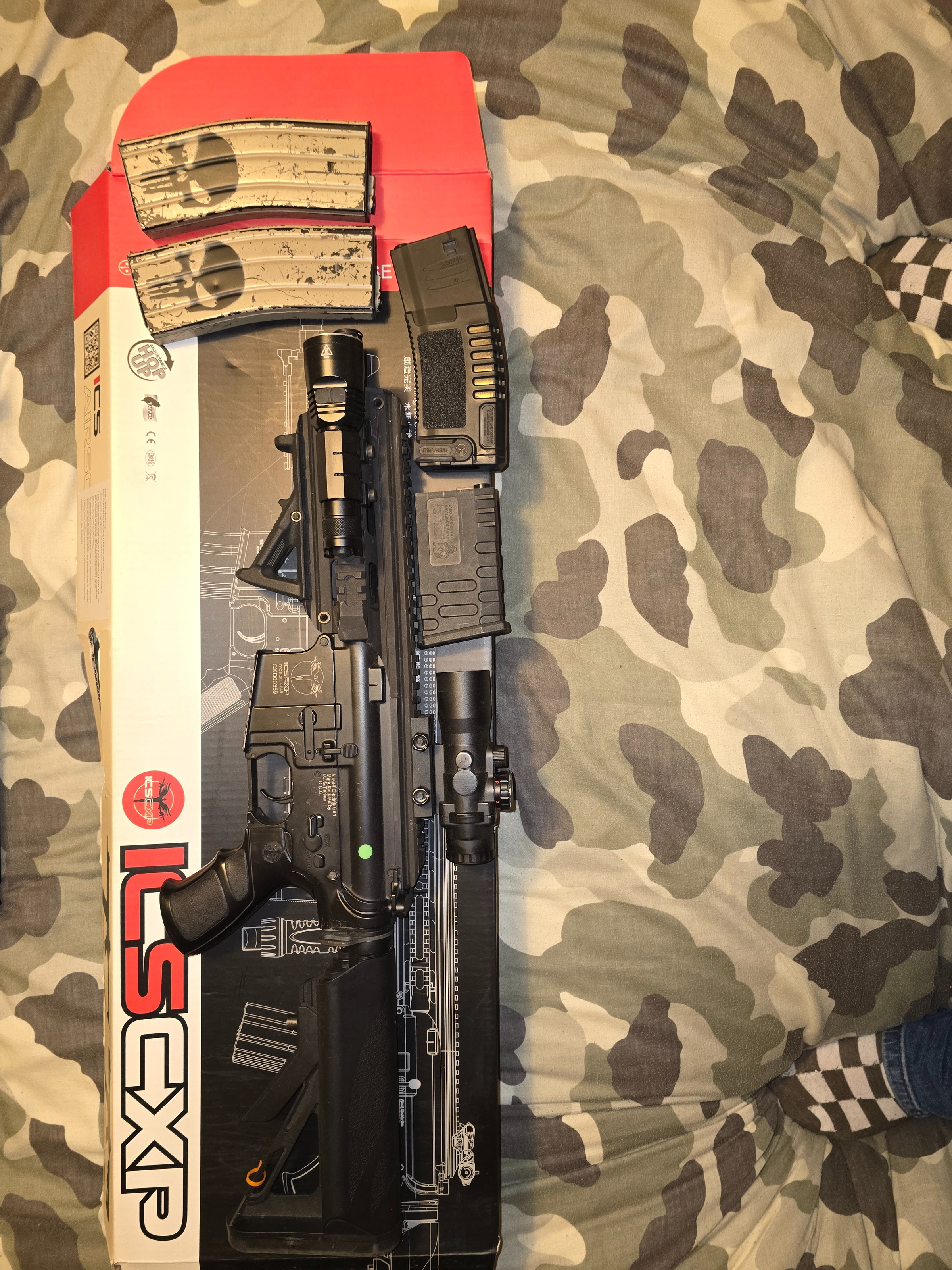 Nog een goed werkende airsoft replica en met 2 accu en met lader en 4 magazine