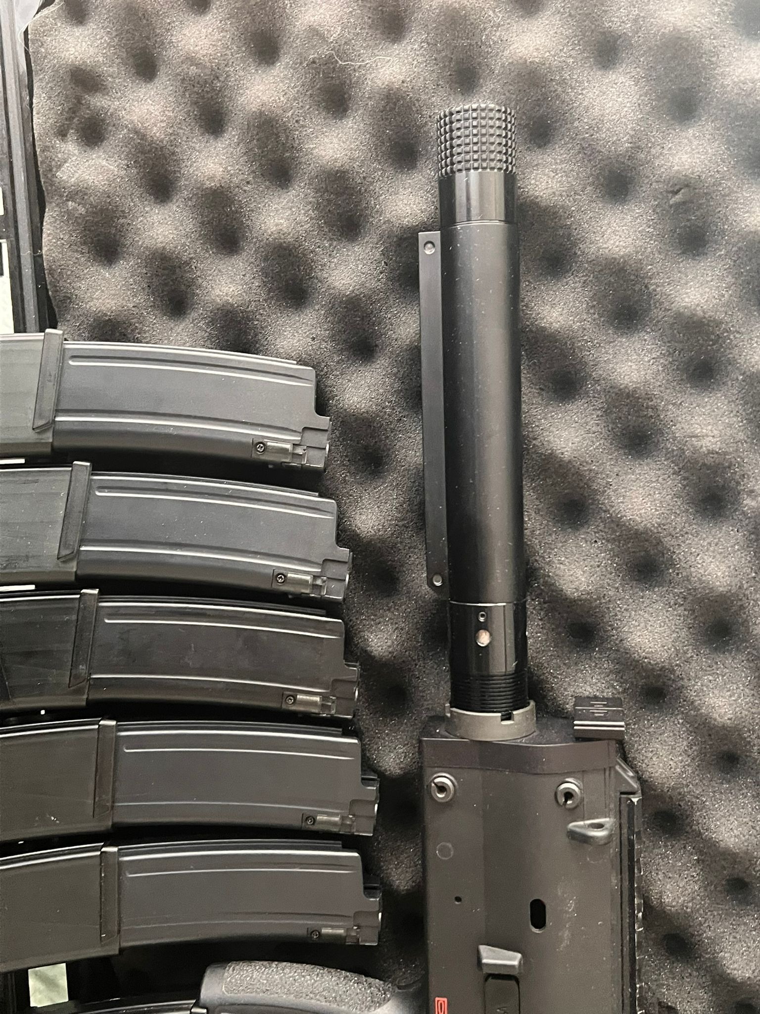 This replica is equipped with a Wolverine WRAITH X CO2 system, which integrates the HPA system directly inside the buffer tube.