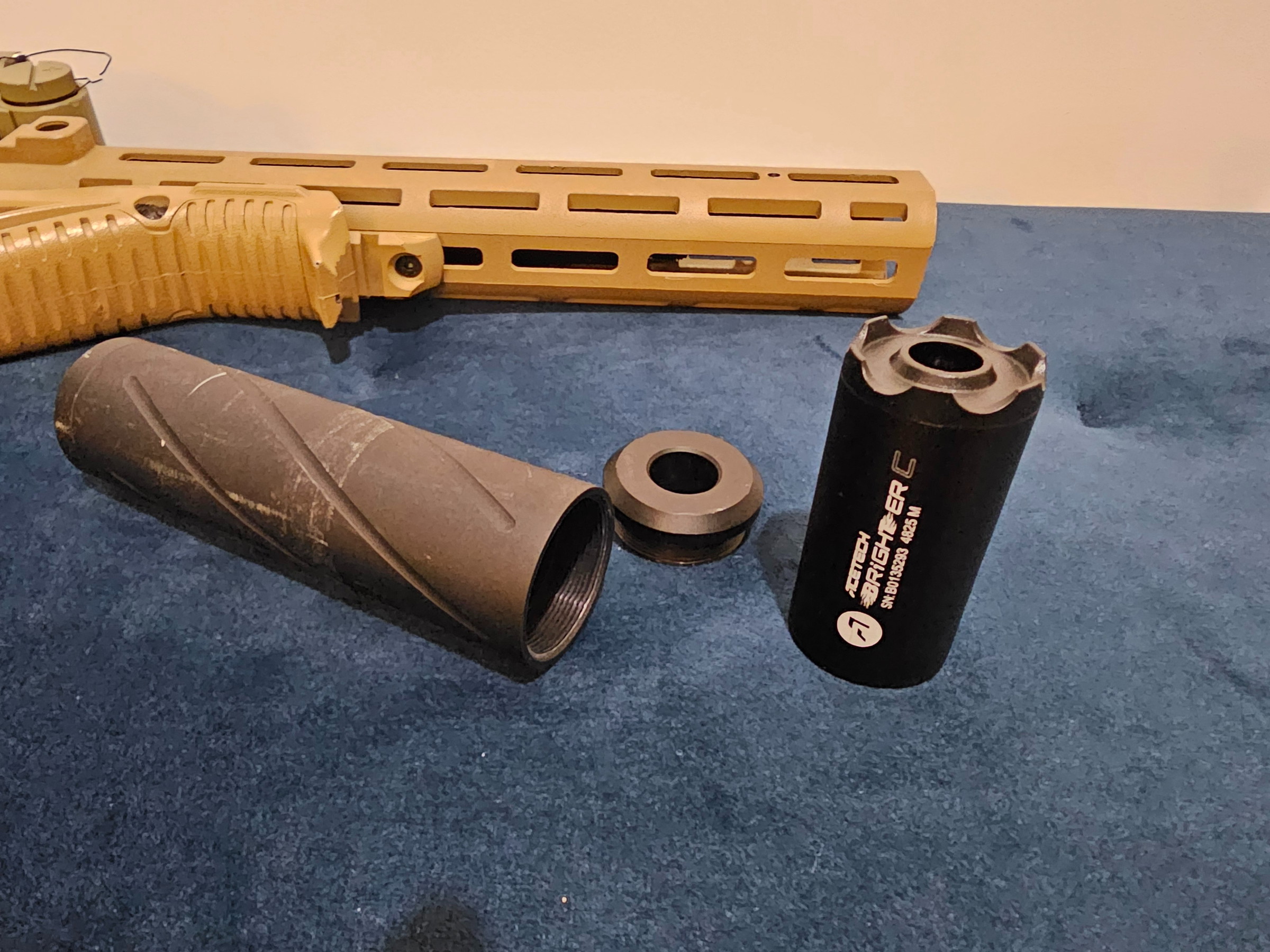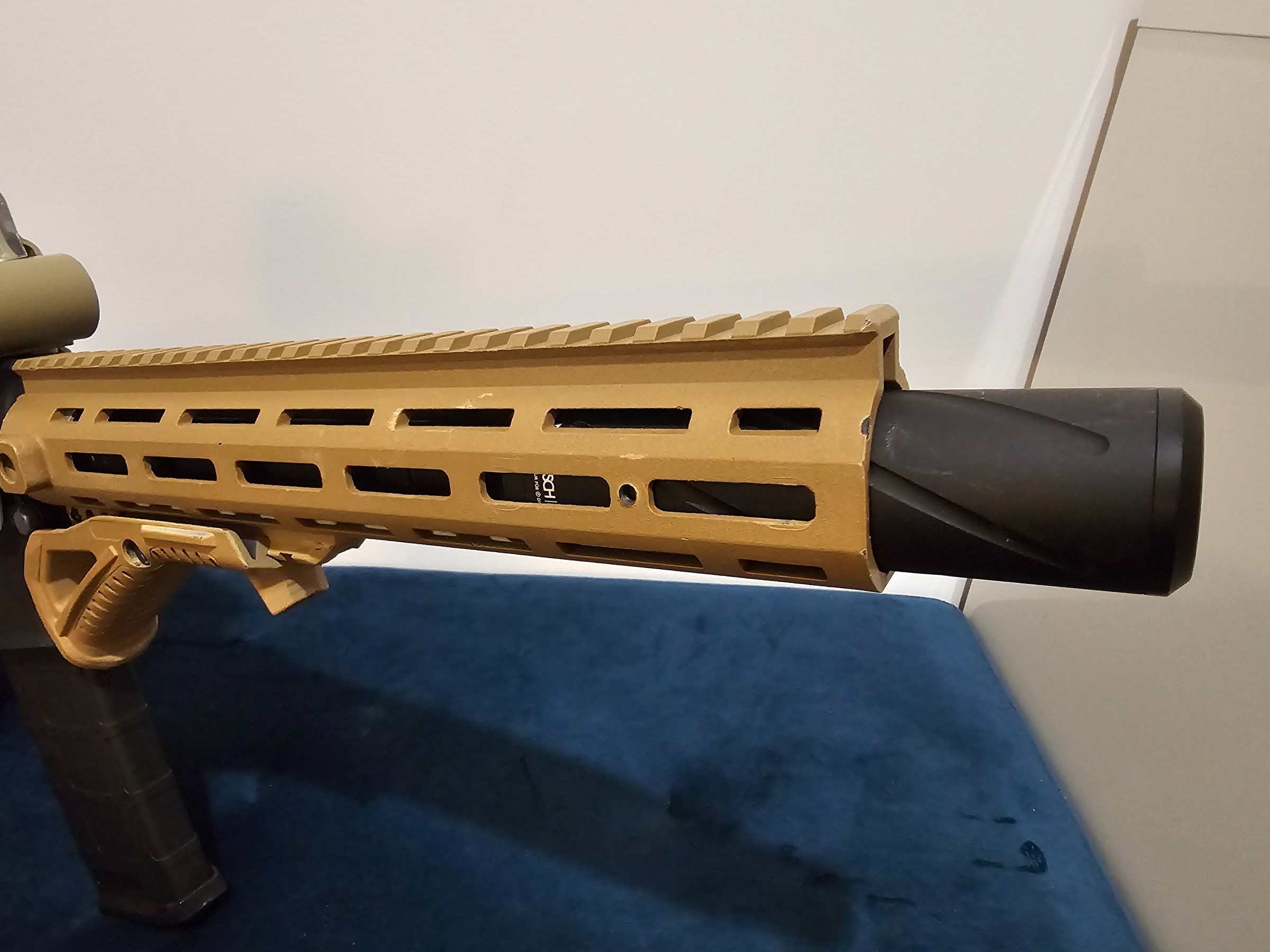 I am the 1st owner and the only reason I am selling it because I fall in love with an other replica and I don't need two. This is the polymer version and I painted the handguard and the stock by myself, therefore you can see some minor scratches on the painting. I changed the bucking to maple leaf super macron and an omega Nub, everything else is still original. I used the replica about 5-6 games, with the new bucking only 1 game. The replica is very accurate and it has a good range and always feeding the BB's, never missing a single one. It comes with 1 mid cap magazine, EO Tech red dot, short inner barrel + mock suppressor (I give you the long barrel too of course) and there is a tracer placed in the suppressor so its ready to use tracer BB-s. If you want to come to try it personally we can visit the local airsoft field's shooting range in Almere. You will not be disappointed!