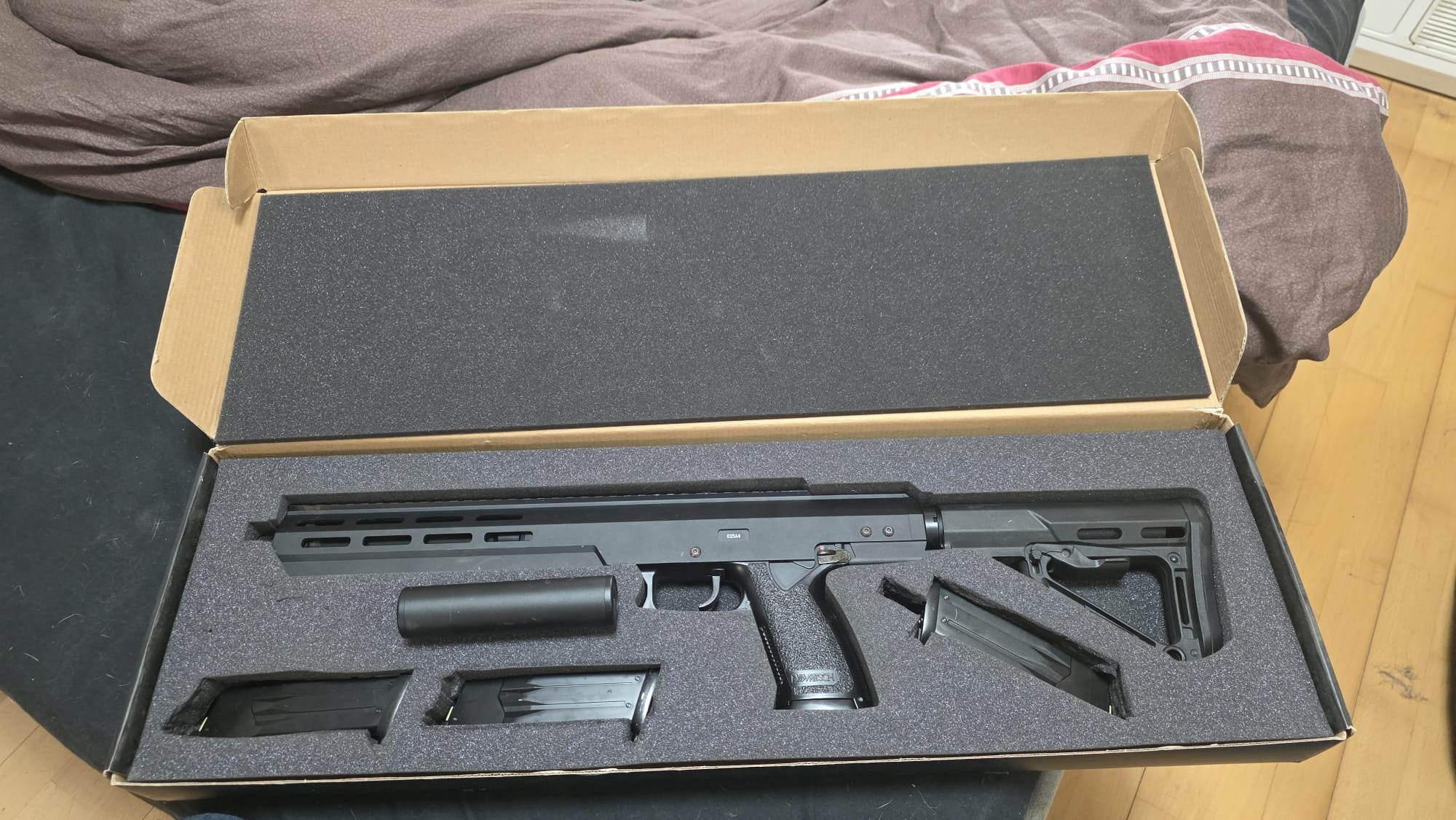 Angeboten wird eine Novritsch SSX 303 nicht modifiziert im besten zustand sowie insgesamt 4 magazine eine Supressorreplik und die originalverpackung