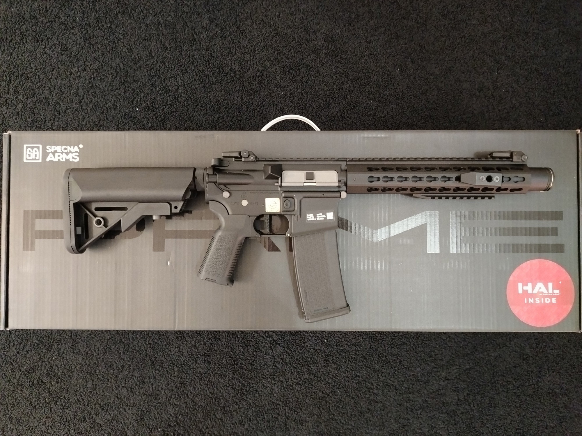 Because of miscommunication I ended up with 3 Specna Arms Prime models this Christmas. Here in Finland energy limit is 1,7J and each of these is little over the limit with standard M120 spring anyway. Therefore any 2 of the 3 options are available and I will keep the leftover 1.  All rifles come as starter pack so