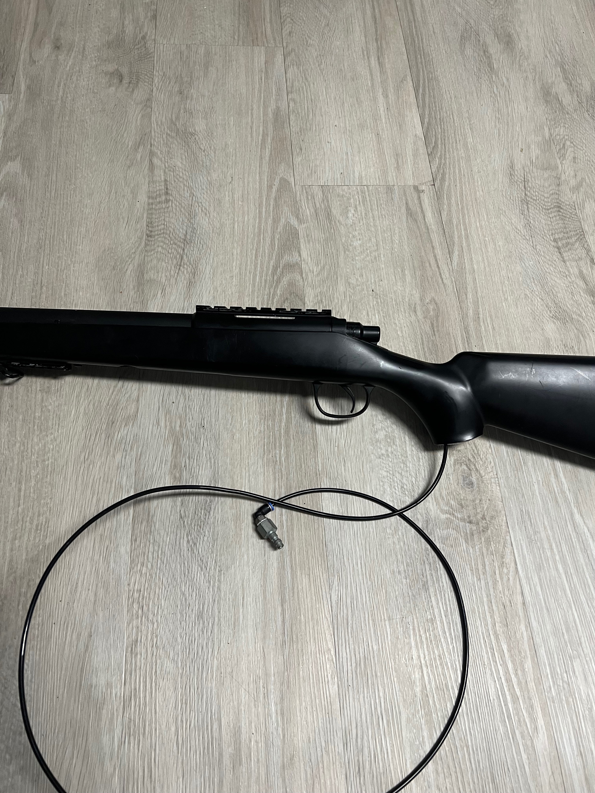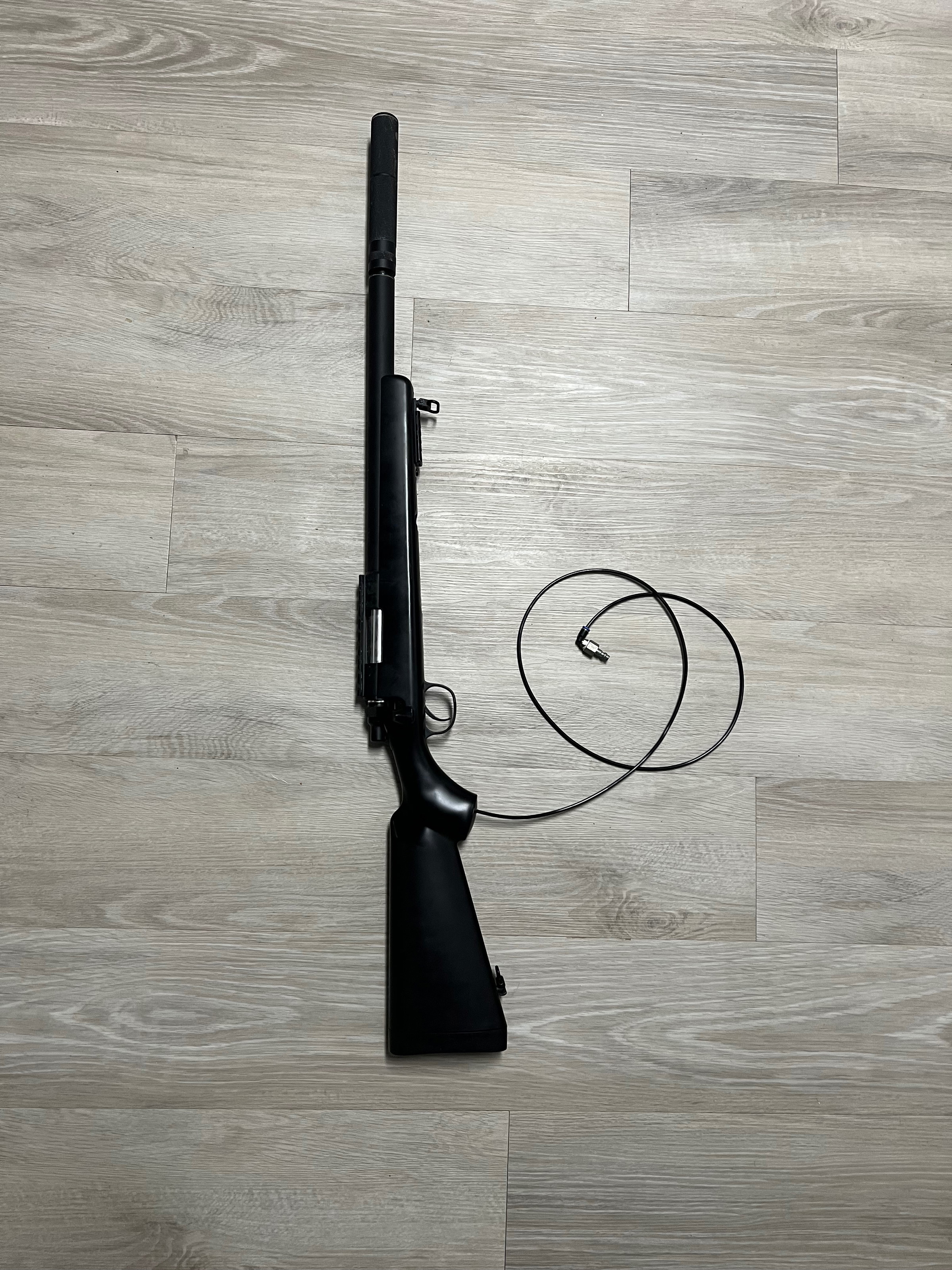 Fun sniper rifle (brand unknown) equipped with a Mancraft SDiK HPA kit. Shoots well and has been tested, but it has been used.