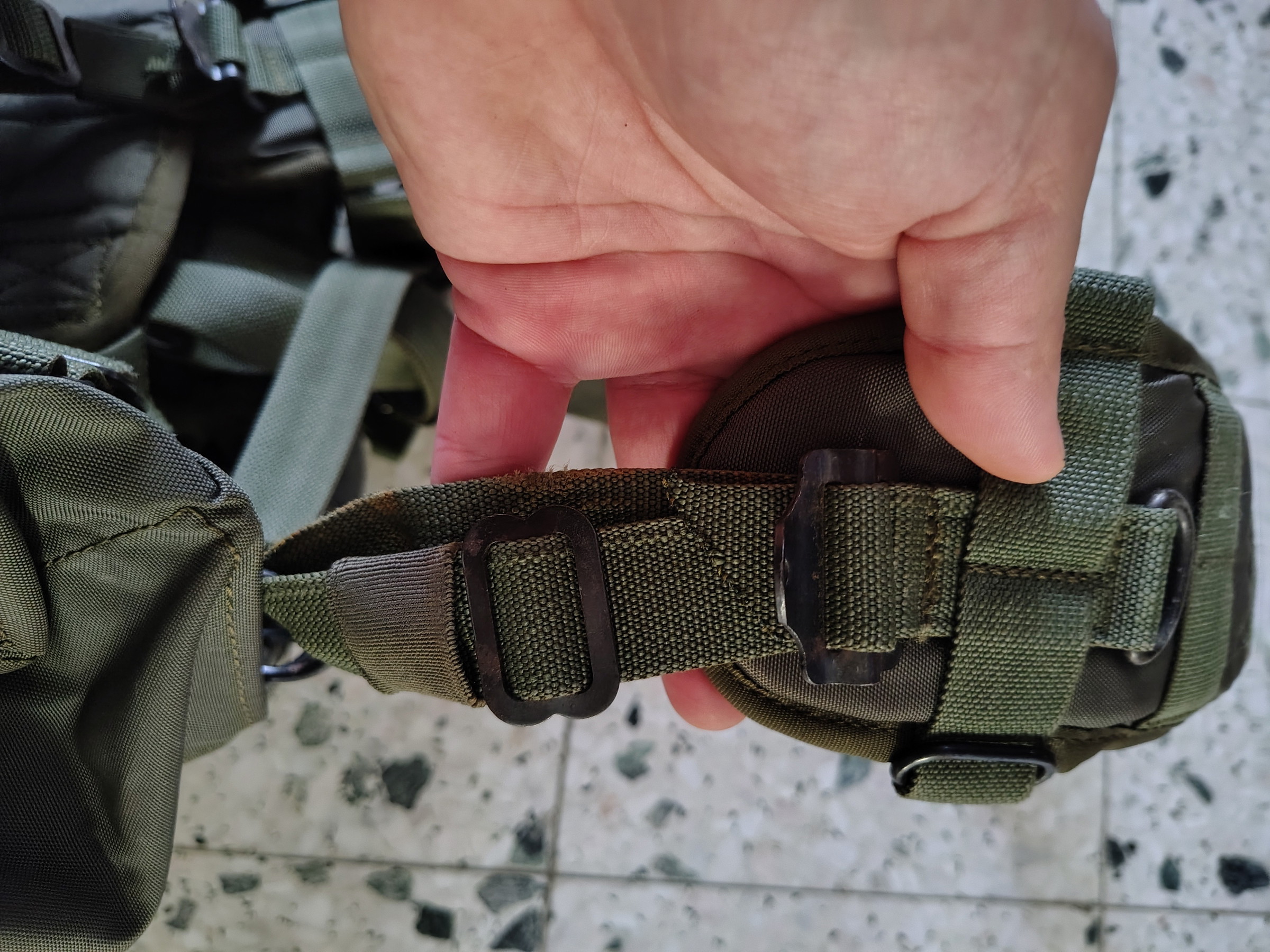 L'ancien propriétaire a recoupé les sangles de réglages (surtout devant) donc convient à quelqu'un qui aime porte un smersh haut, je dirais de max 1m80