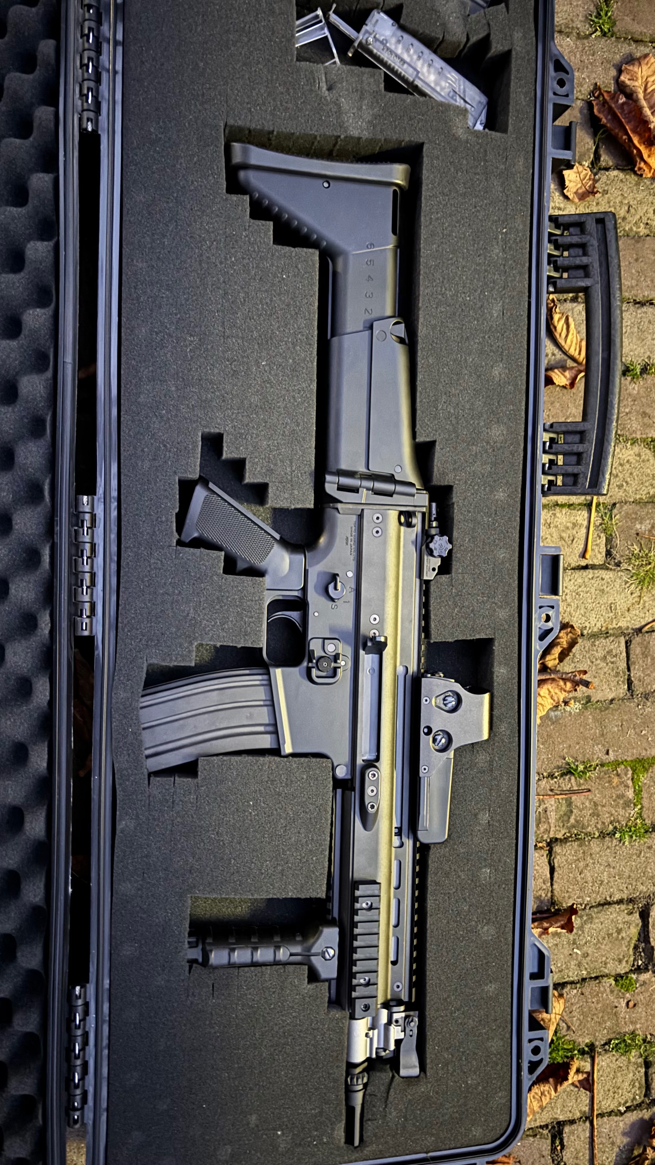 Beide replica’s hebben het huis nooit verlaten en hebben altijd netjes opgeborgen gezeten in de Nuprol case. De Scar L is voorzien van een Red dot sight en heeft 2 extra Lipo accu’s, extra magazijn, quickloader en een oplader. De Hi Capa is geupgrade met een aluminium Infinity slide. Verder zitten er nog een hoop BB’s bij, targets om te oefenen, enz. Eventueel heb ik ook nog kleding die overgenomen mag worden. De spullen worden verkocht i.v.m. het beīndigen van mijn hobby. Mail gerust bij eventuele vragen.