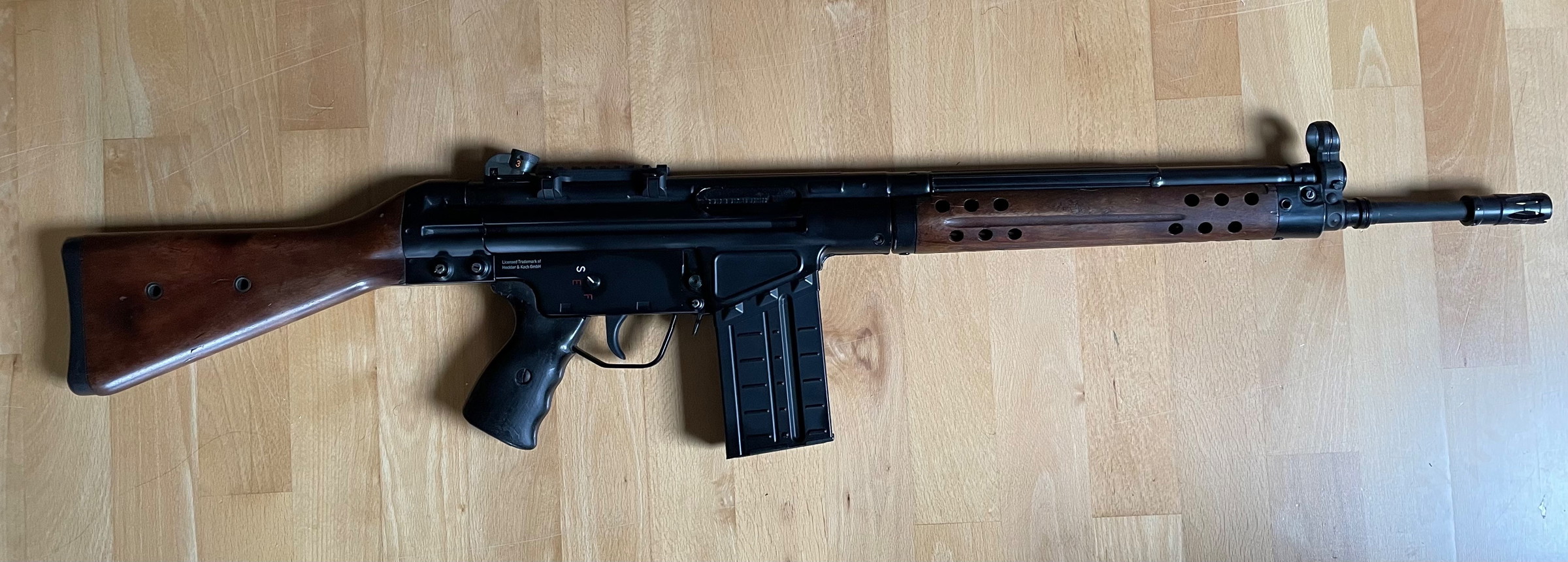 Der ursprüngliche Handschutz der vom Hersteller kam wurde schwarz lackiert. Die Holzteile sind trotz ihres Alters in top Zustand und ohne Risse. Ich verkaufe das G3 als gepflegtes Sammlerstück. Abgabe nur an Personen über 18 Jahre. Beim Kauf muss nach dem Gesetz ein Personalausweis vorgelegt werden. Bezahlung am liebsten per Paypal. Versand bei Kostenübernahme möglich.