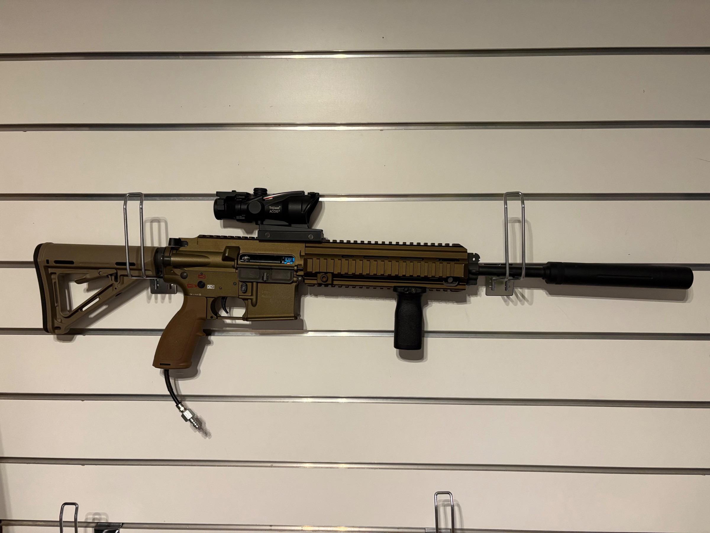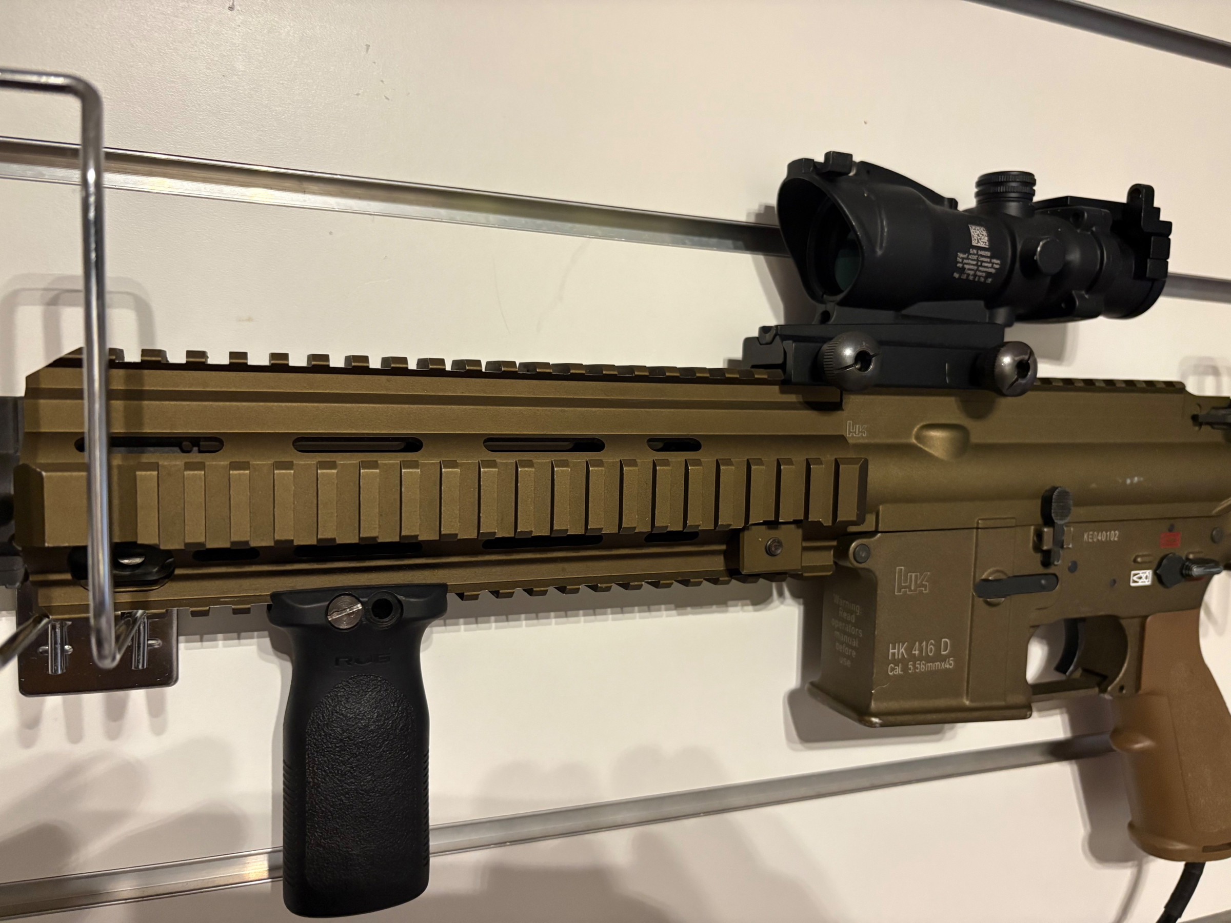 Verkoop wegens te veel replica’s : deze FFC HK 416 met Fusion engine. Verder een maxx hopup, precision barrel, front grip,  Acog scope met red cross, silencer en magpul stock.