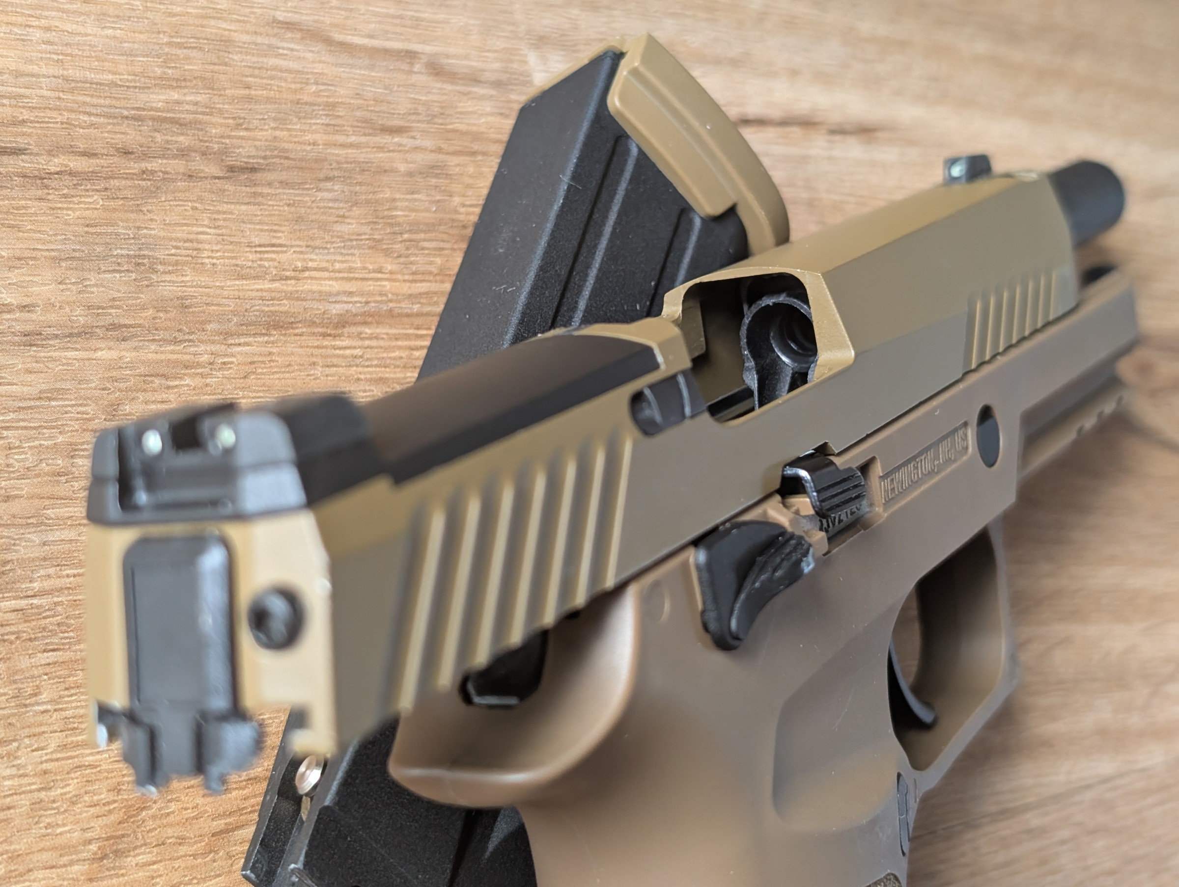 Die Pistole hat ein "F" für den deutschen Markt.