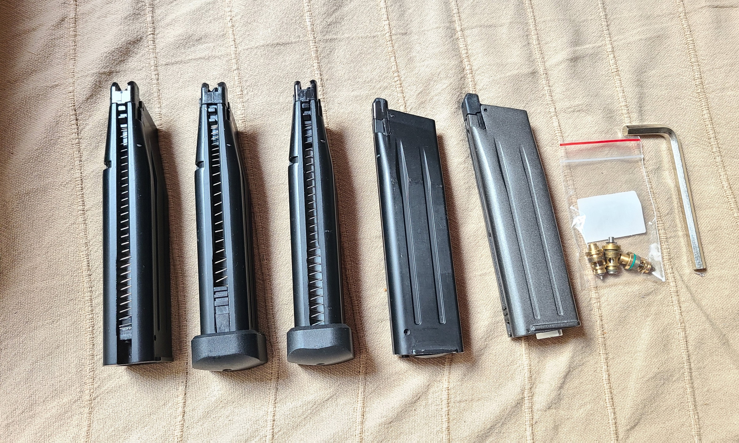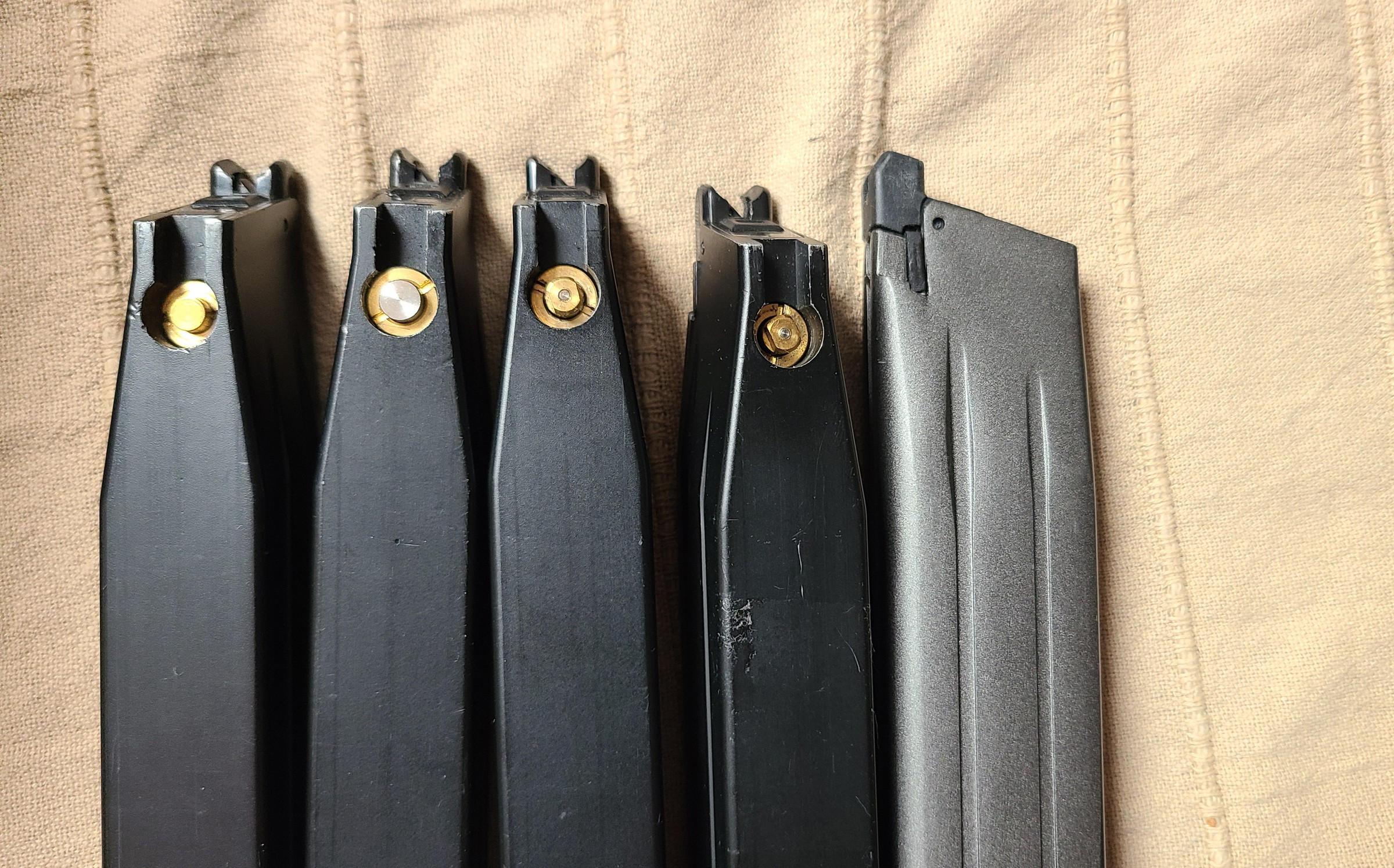 All are GBB magazines for the GBB High Capacity 5.1 model from manufacturers such as KLI, KWC, KSC, Well, Novritsch SPP1 etc.