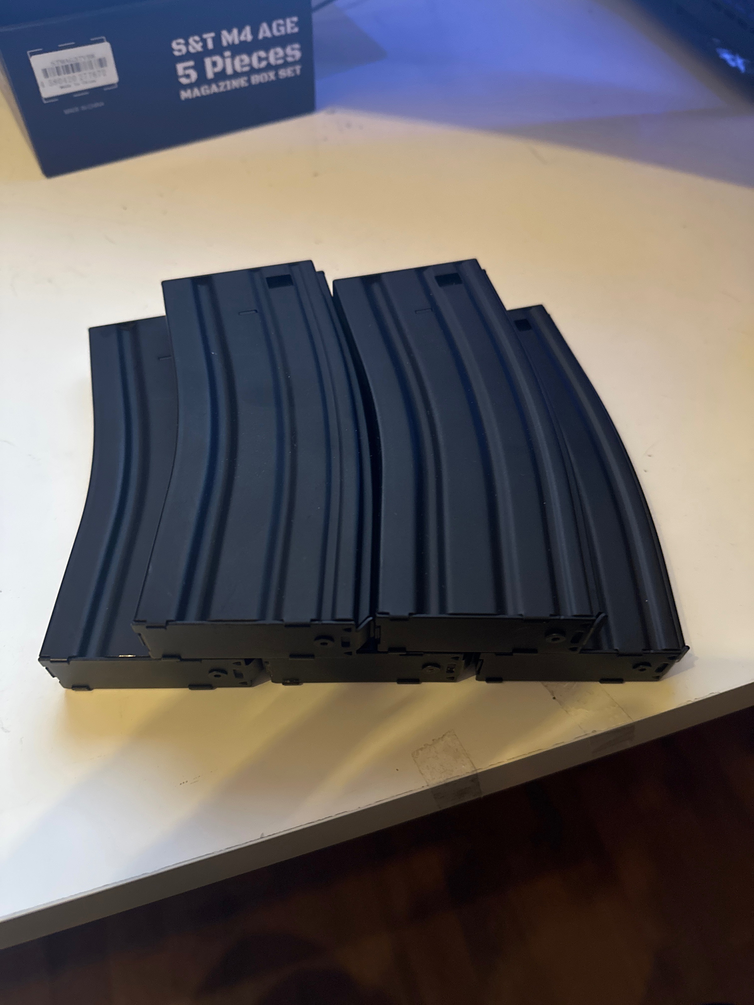 Hierbij verkoop ik 5 magazijnen set van S&T van metaal