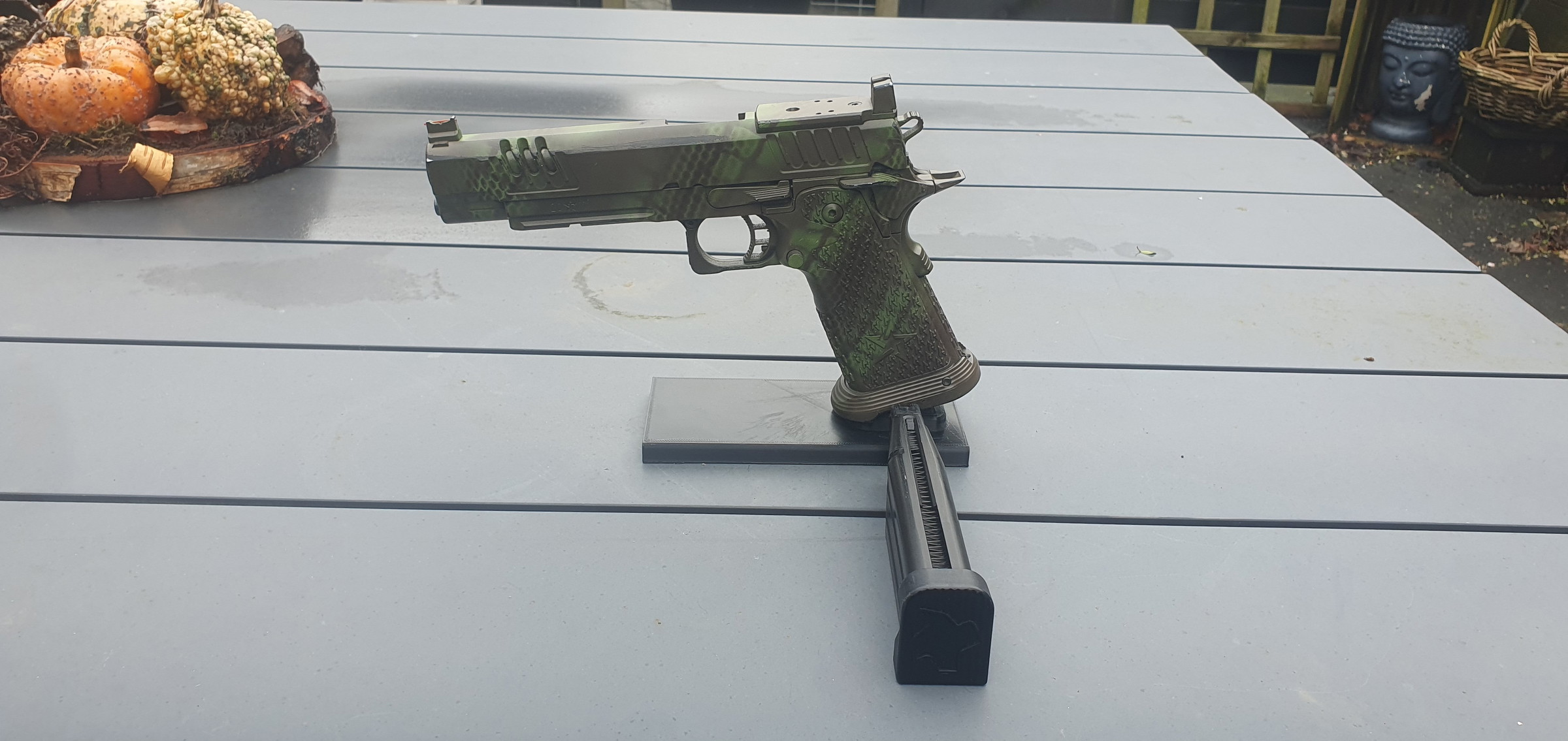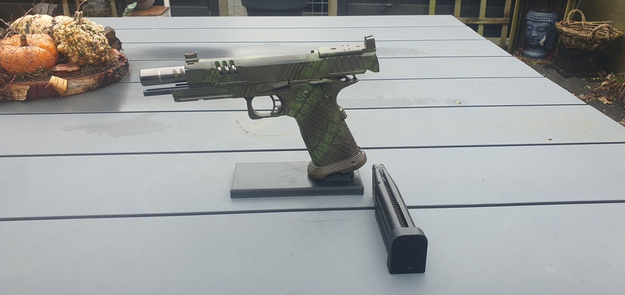 Gaat om een Staccato XL van Army armament. Is een Tokyo Marui Hi-Capa spec 2011 dus genoeg spare parts & upgrades!