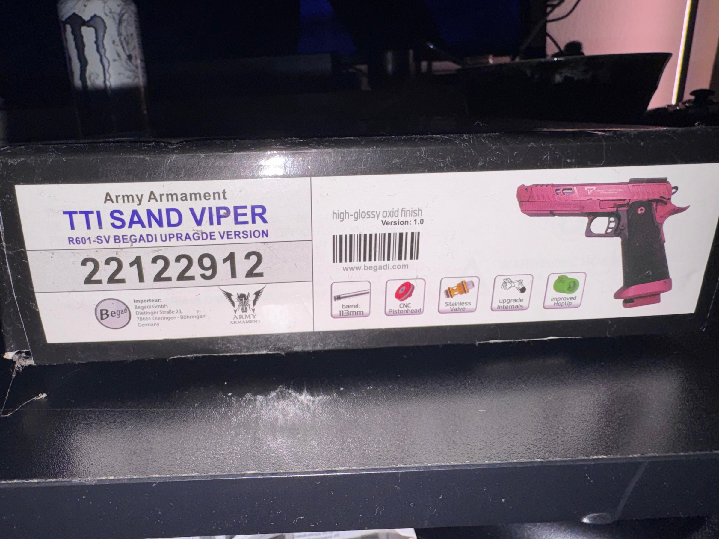 Verkaufe meine Army Armament TTI Sand Viper (R601) HiCapa GBB in der CNC Begadi Upgrade Version.