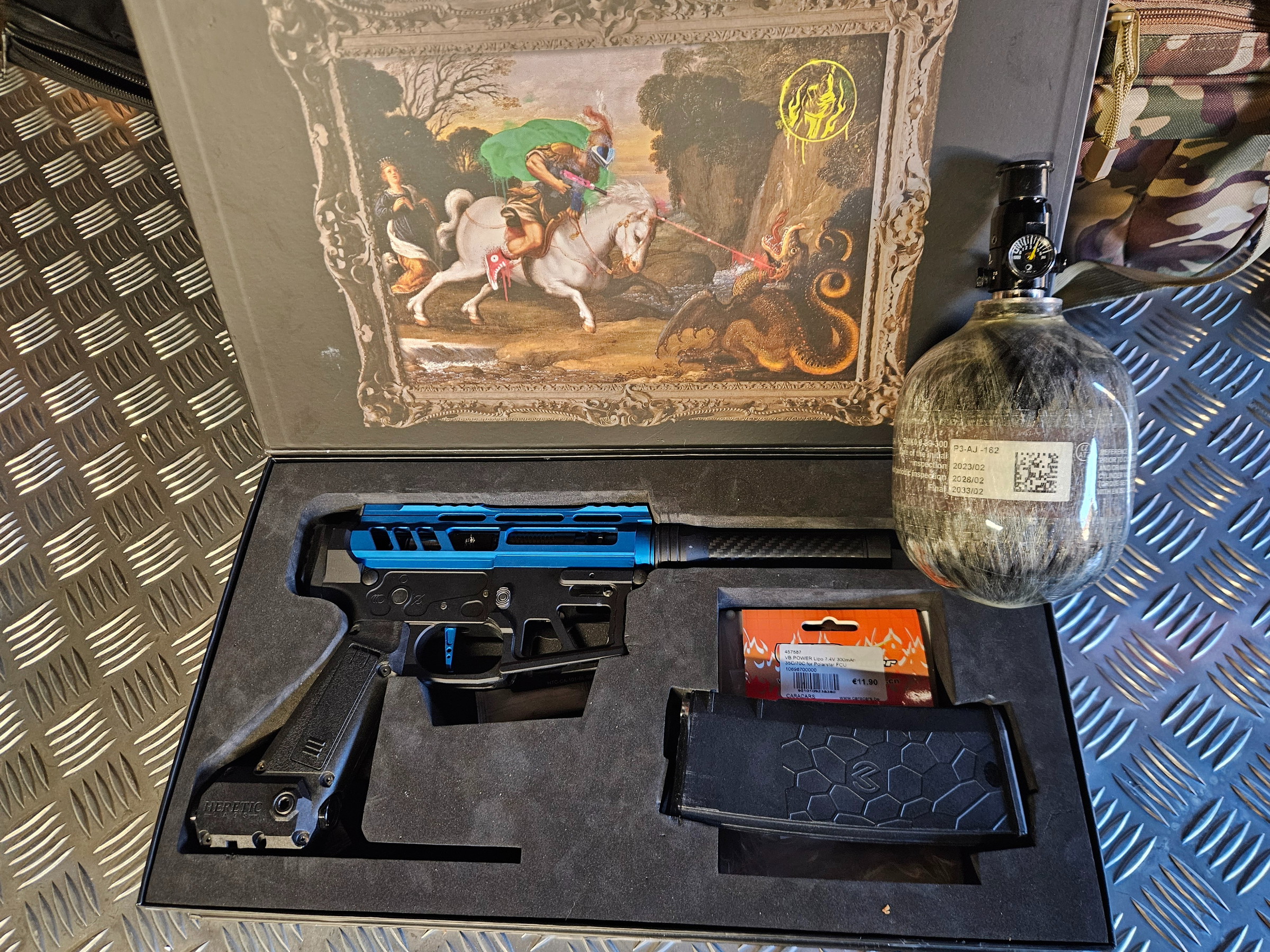 Heretic Labs presenteert het ultieme HPA speedsoft-instrument. In Artikel I is alleen datgene opgenomen wat nodig is voor optimale prestaties, waarmee de ballast van de milsim-orthodoxie wordt weggelaten. Het begint met een robuuste, maar uitgeholde MTW CNC-gefreesde aluminium receiver. De laadhendel, buffertube en kolf zijn verdwenen. In plaats van een rail zorgt de loop van echt koolstofvezel ervoor dat de voorkant licht blijft, met een totaalgewicht van slechts 2,1 pond (ca. 950 gram).