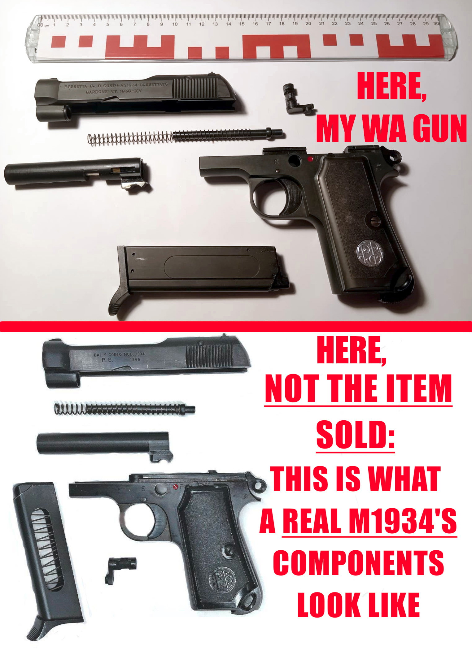 During WWII M34 was produced also for foreign markets, like Romania, on this variant you can read CAL.9 SCURT instead of italian CAL.9 CORTO, Western Arms replicated also this romanian variant. As usual for WA replicas, the object is really faithful to the original one in component shape and also in actual weight: 587 g VS around 650 g of the real one.