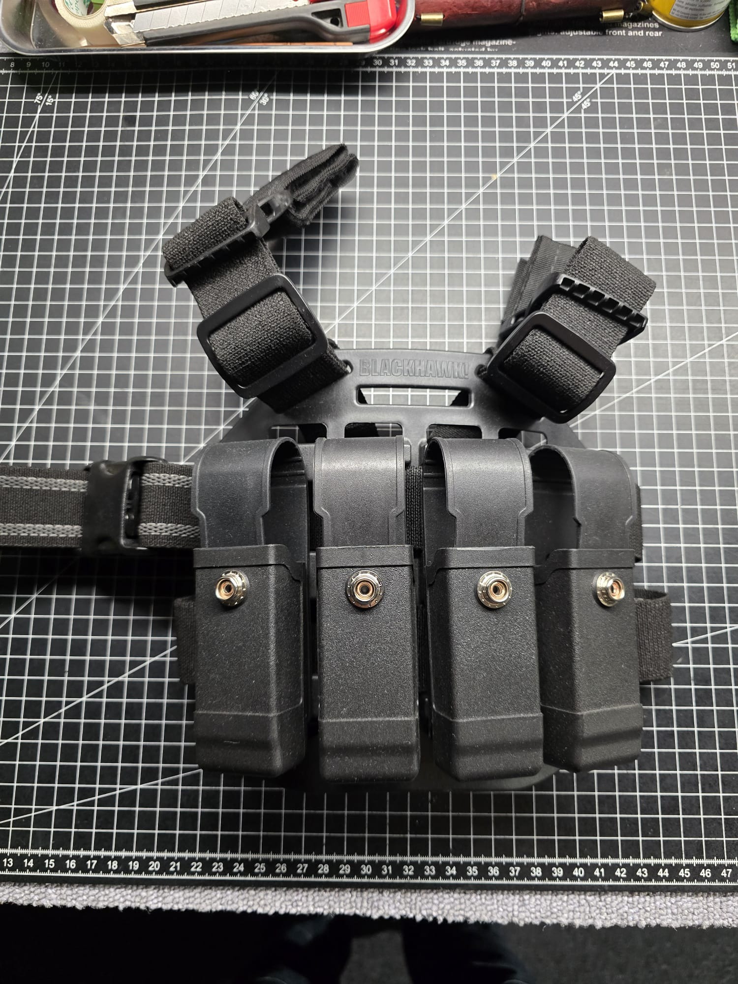 Je vends un porte-cuisse rigide de couleur noire et de marque BLACKHAWK.