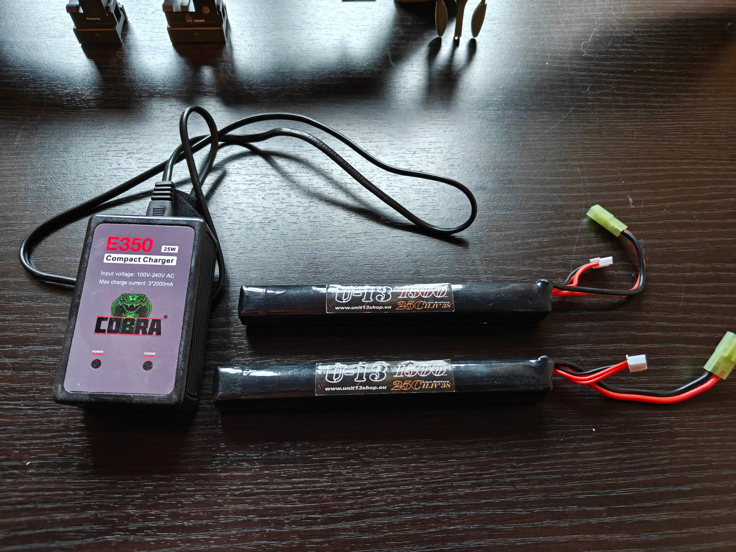 - Power: 2x LiPo batterijen (11.1V, 1500mAh) en Cobra E350 Compact Charger.