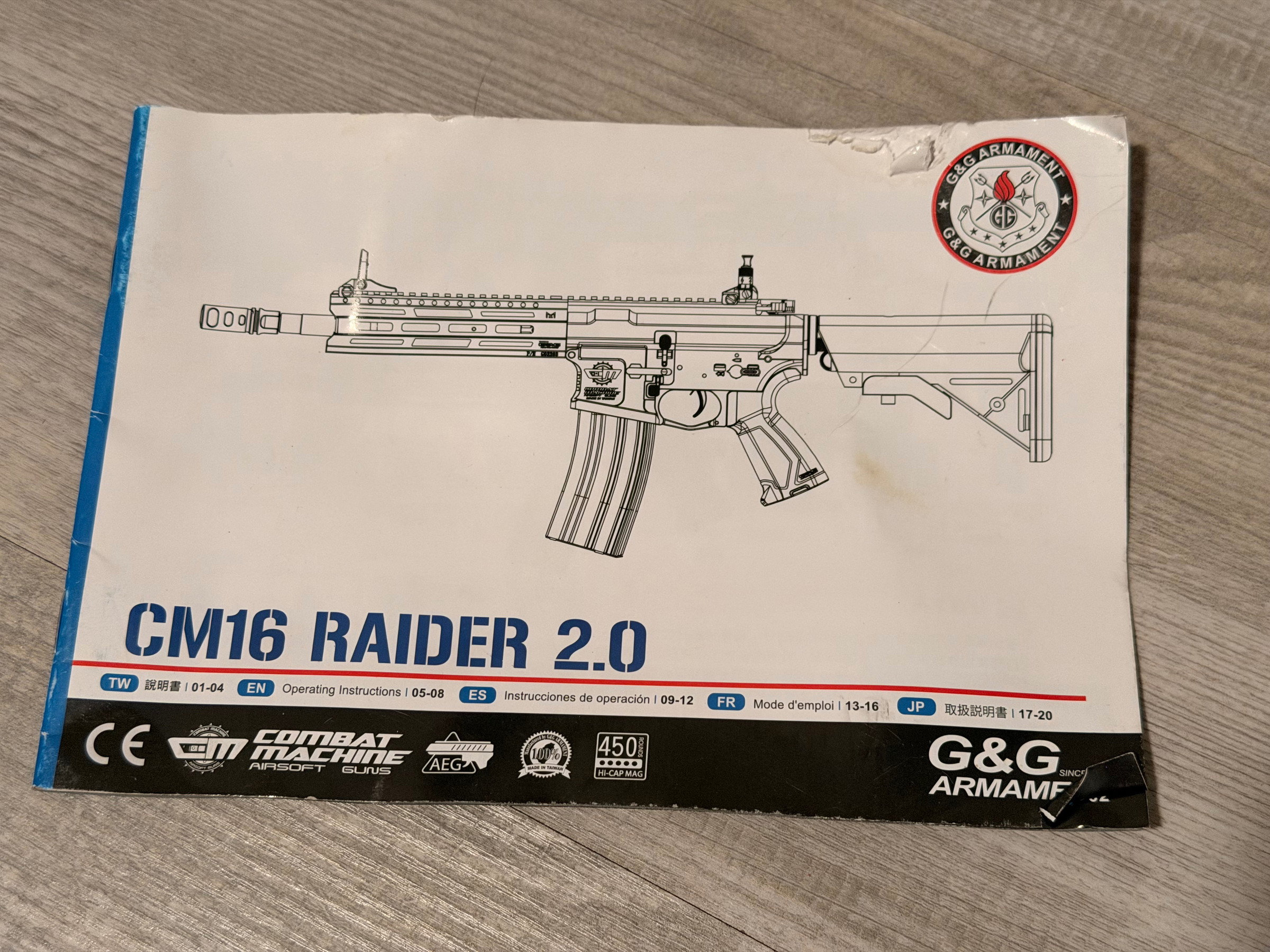 Wegens overstap naar een ander platform bied ik mijn zeer complete G&G CM16 Raider 2.0 set aan. Deze replica is een moderne klassieker en staat bekend om zijn betrouwbaarheid en lichte, sterke behuizing. De set is ongeveer 8 skirms gebruikt en heeft een totale nieuwwaarde van circa €500,-.