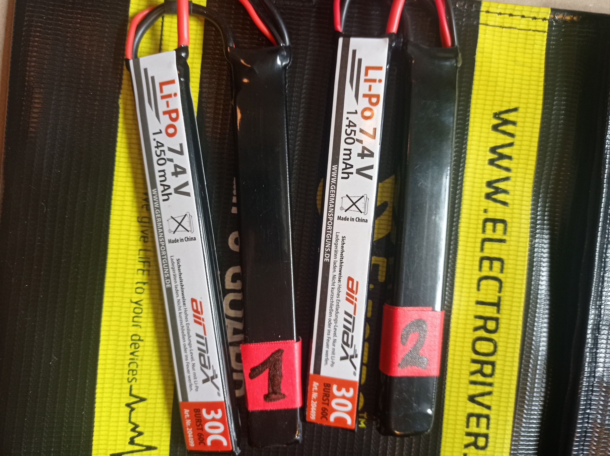 - Zwei airmax 7,4V 1,450mAH  Li-Po Akkus (immer sicher und teilgeladen gelagert)